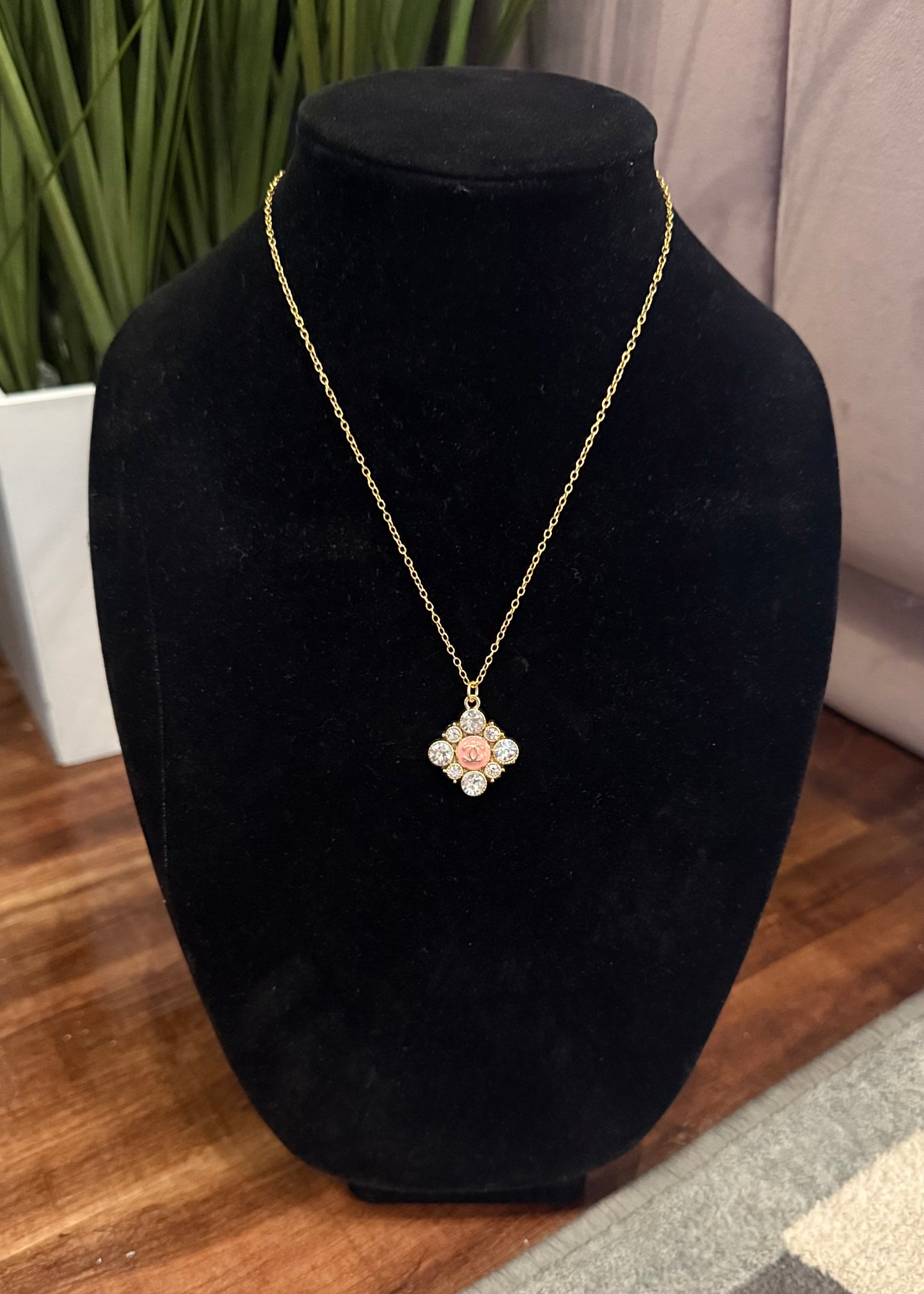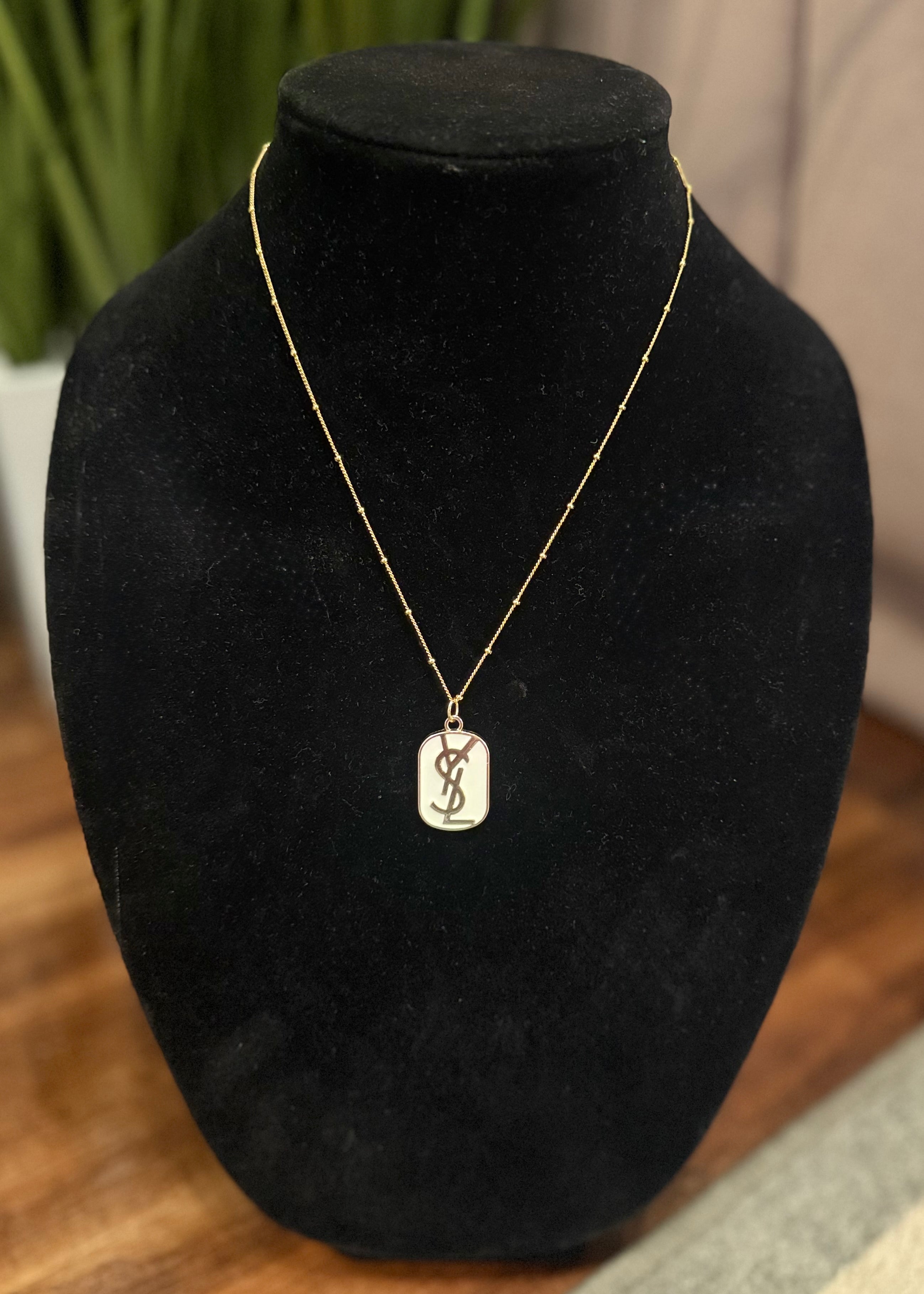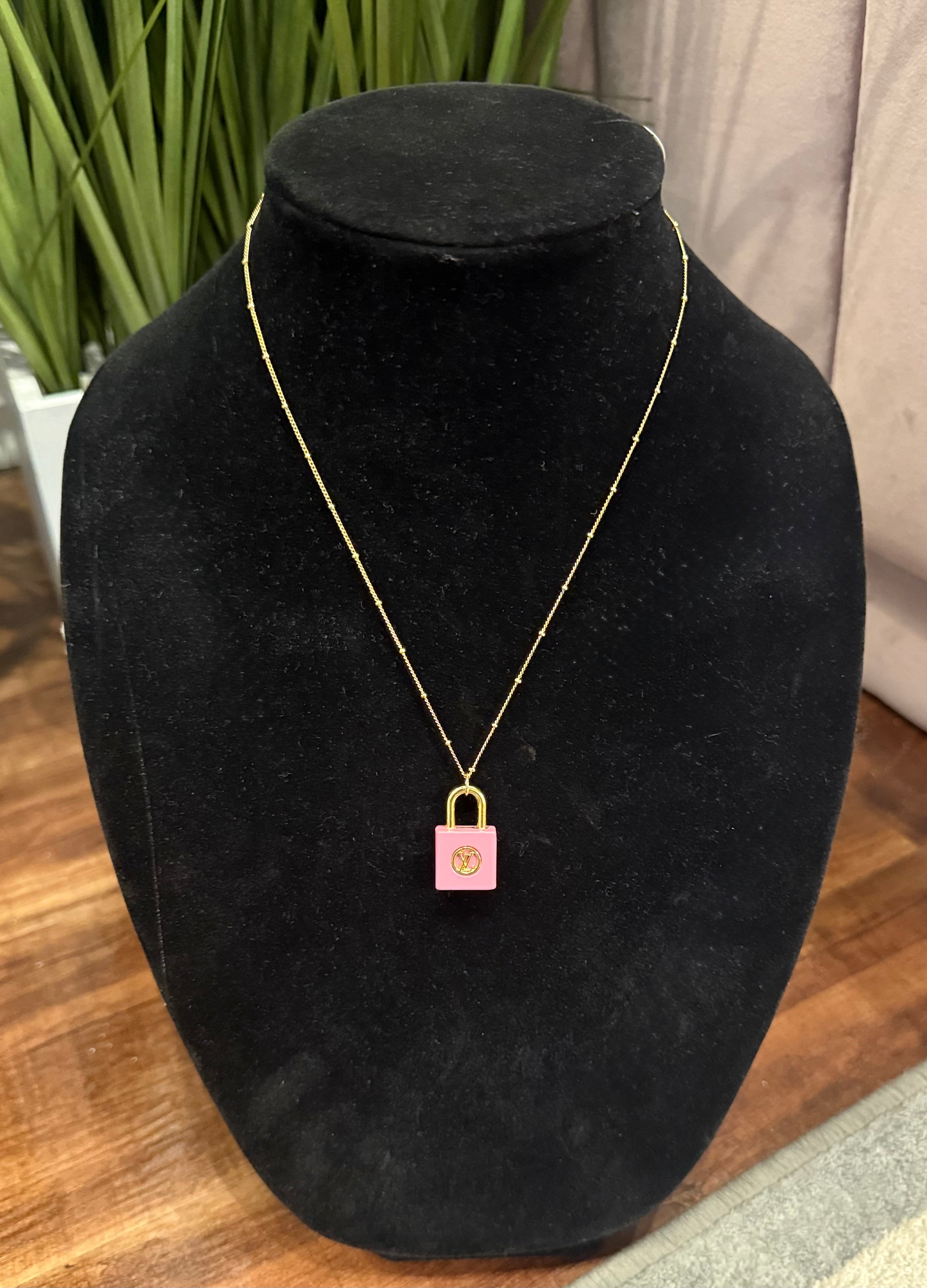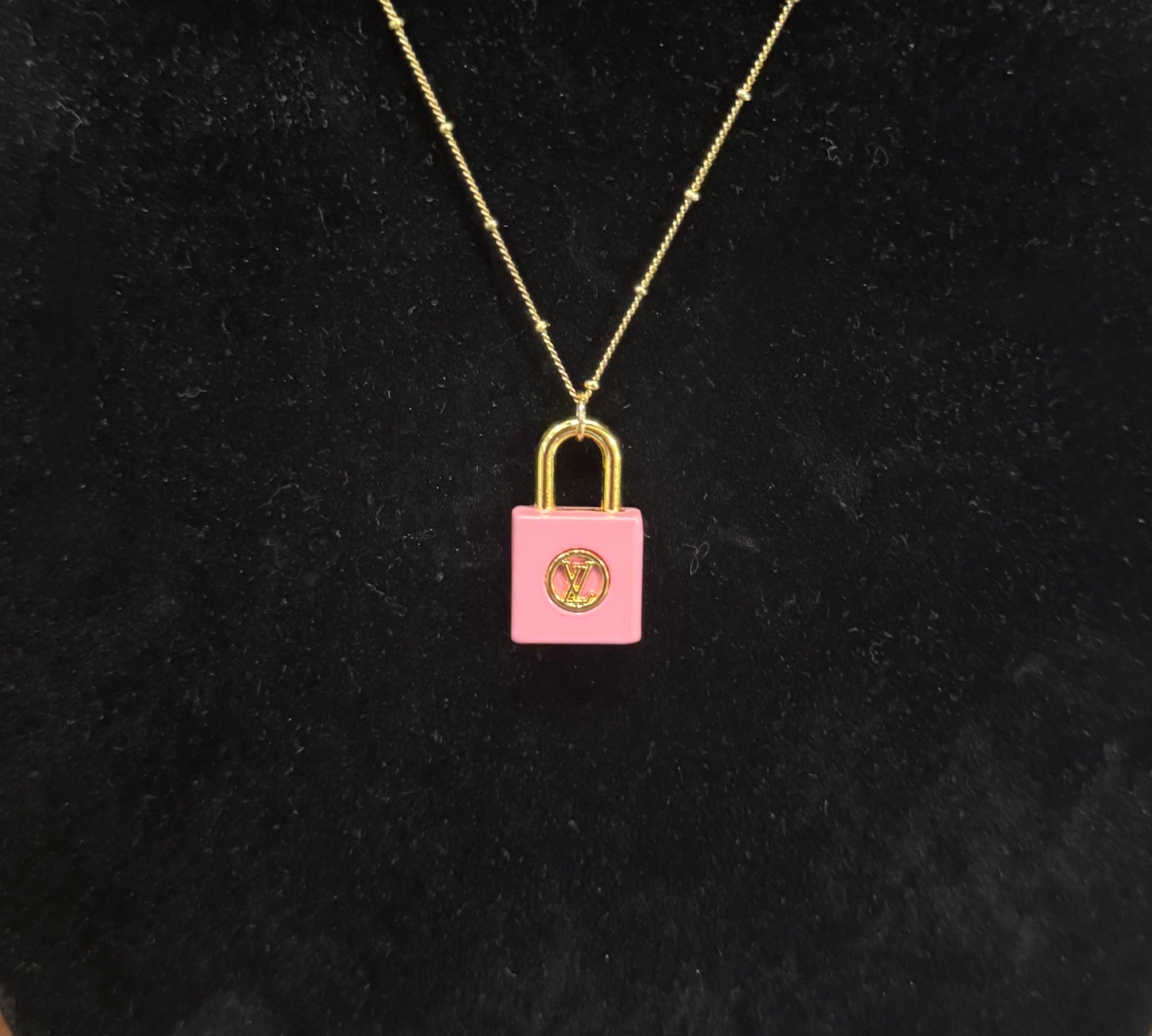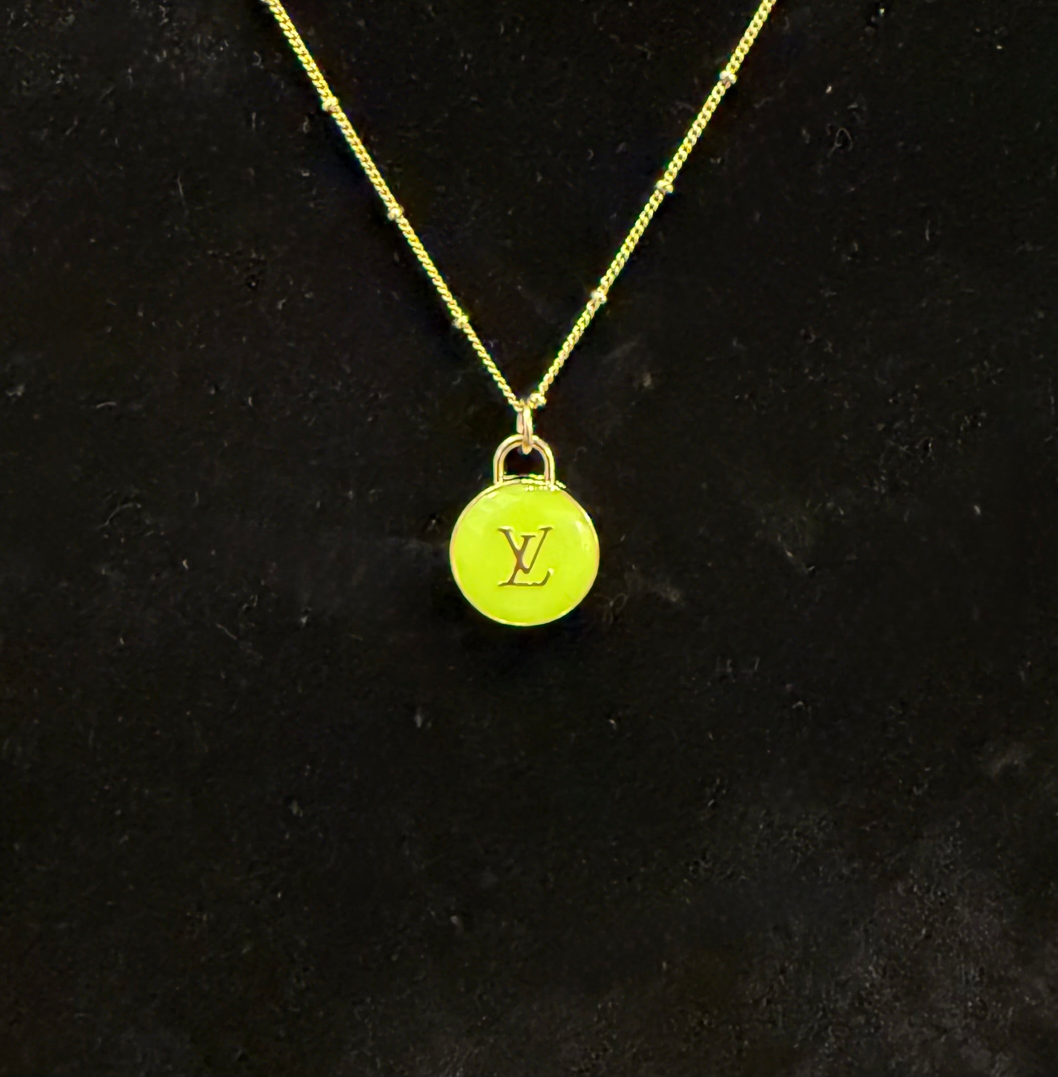 Necklaces are 18” with a lobster clasp and are made of brass and then electroplated in the USA using imported precious metals; copper, 24k gold, and .999 fine silver