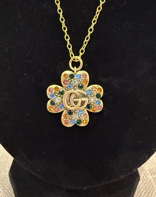 Necklaces are 18” with a lobster clasp and are made of brass and then electroplated in the USA using imported precious metals; copper, 24k gold, and .999 fine silver