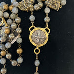 Coin charm with cross and fleur de lis details