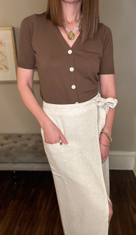 APRICOT LINEN MIX CARGO WRAP SKIRT 3.28