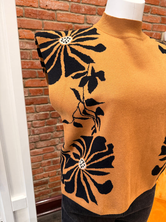 ENTRO EXTENDED SIZES CAMEL AND BLACK SLEEVELESS SWEATER 9.11