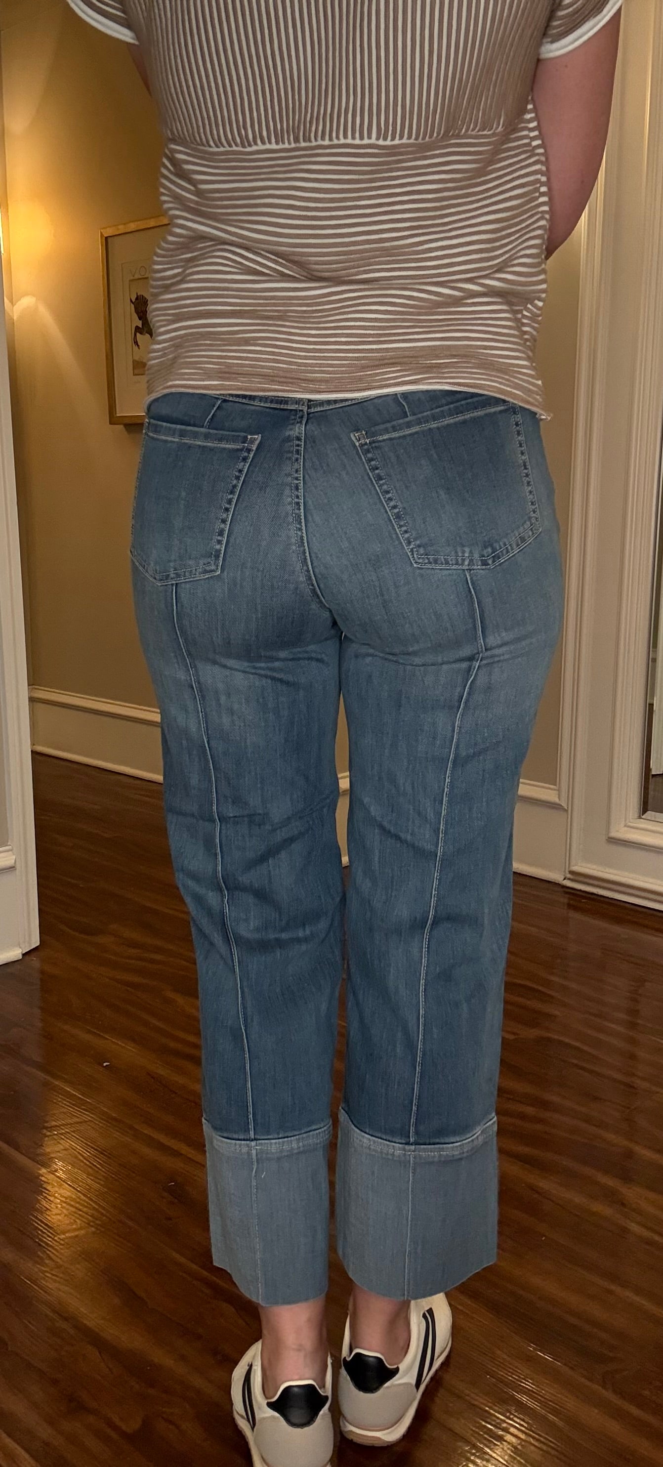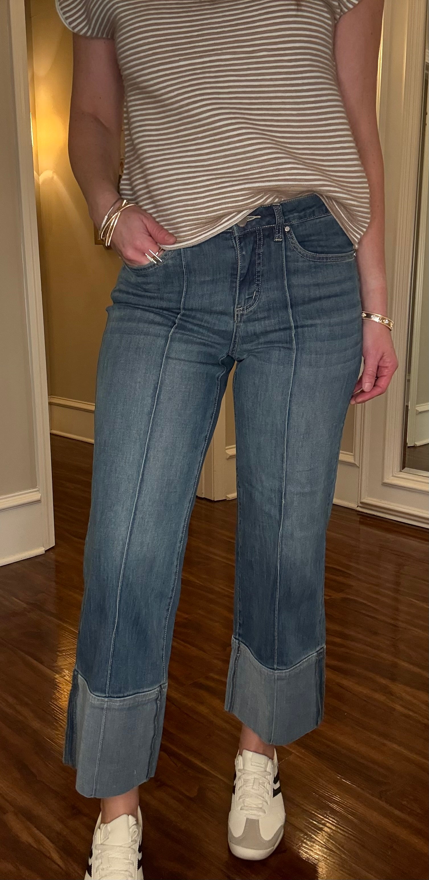 Sewn cuff with lighter wash