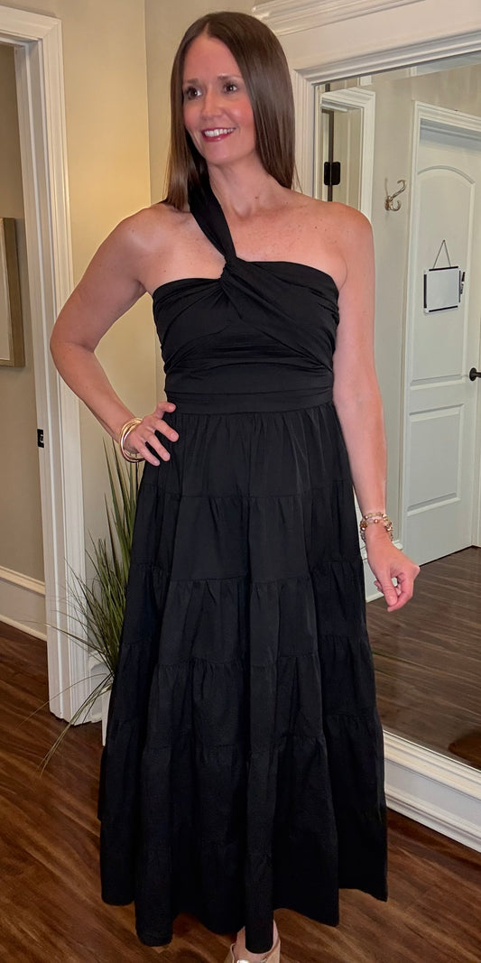 LUCY PARIS BLACK POPLIN ONE SHOULDER DRESS 6.19