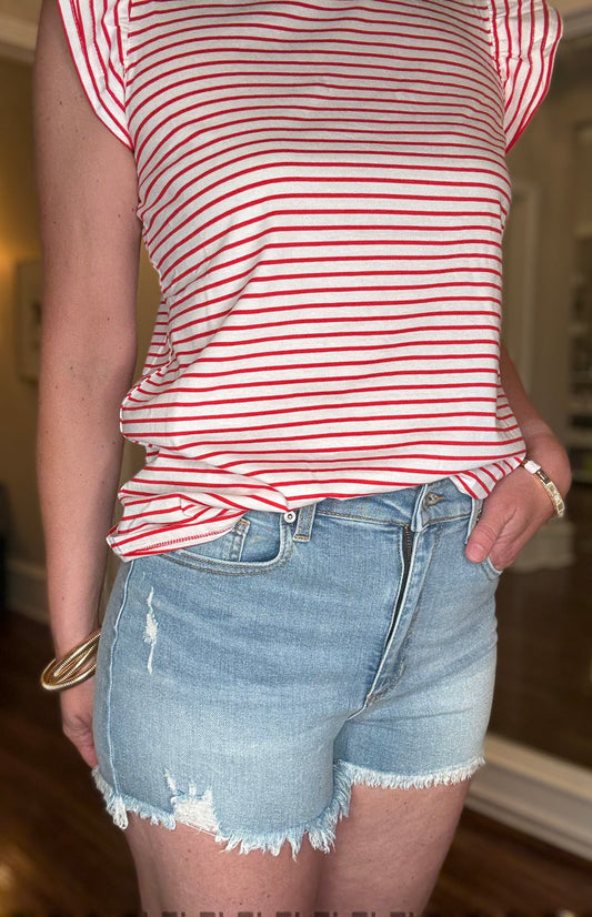 HIGH RISE LIGHT WASH DENIM SHORTS 5.22
