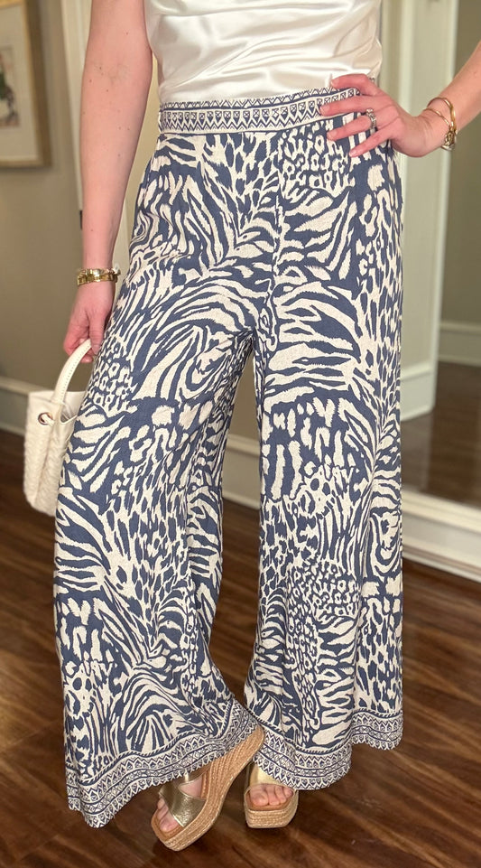 MOLLY BRACKEN DENIM BLUE PATTERNED PANTS 2.25