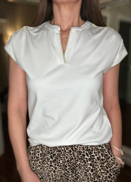 MOLLY BRACKEN V-NECK RUFFLED CAP SLEEVE WITH STUDS 2.13