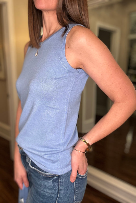 MULTIPLES CORNFLOWER JEWEL NECK TANK SWEATER 12.23