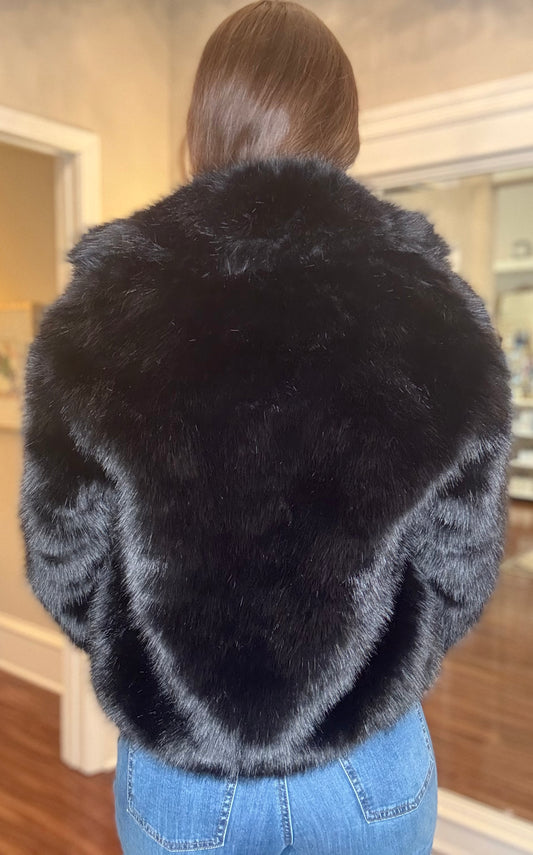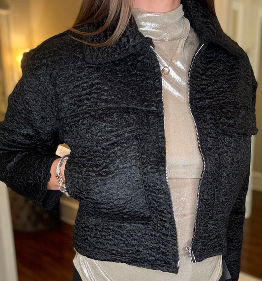 MOLLY BRACKEN BLACK FAUX FUR CROPPED JACKET 8.15