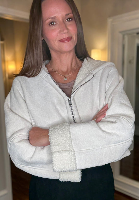 CREAM FAUX SUEDE JACKET WITH SHERPA LINING 9.15
