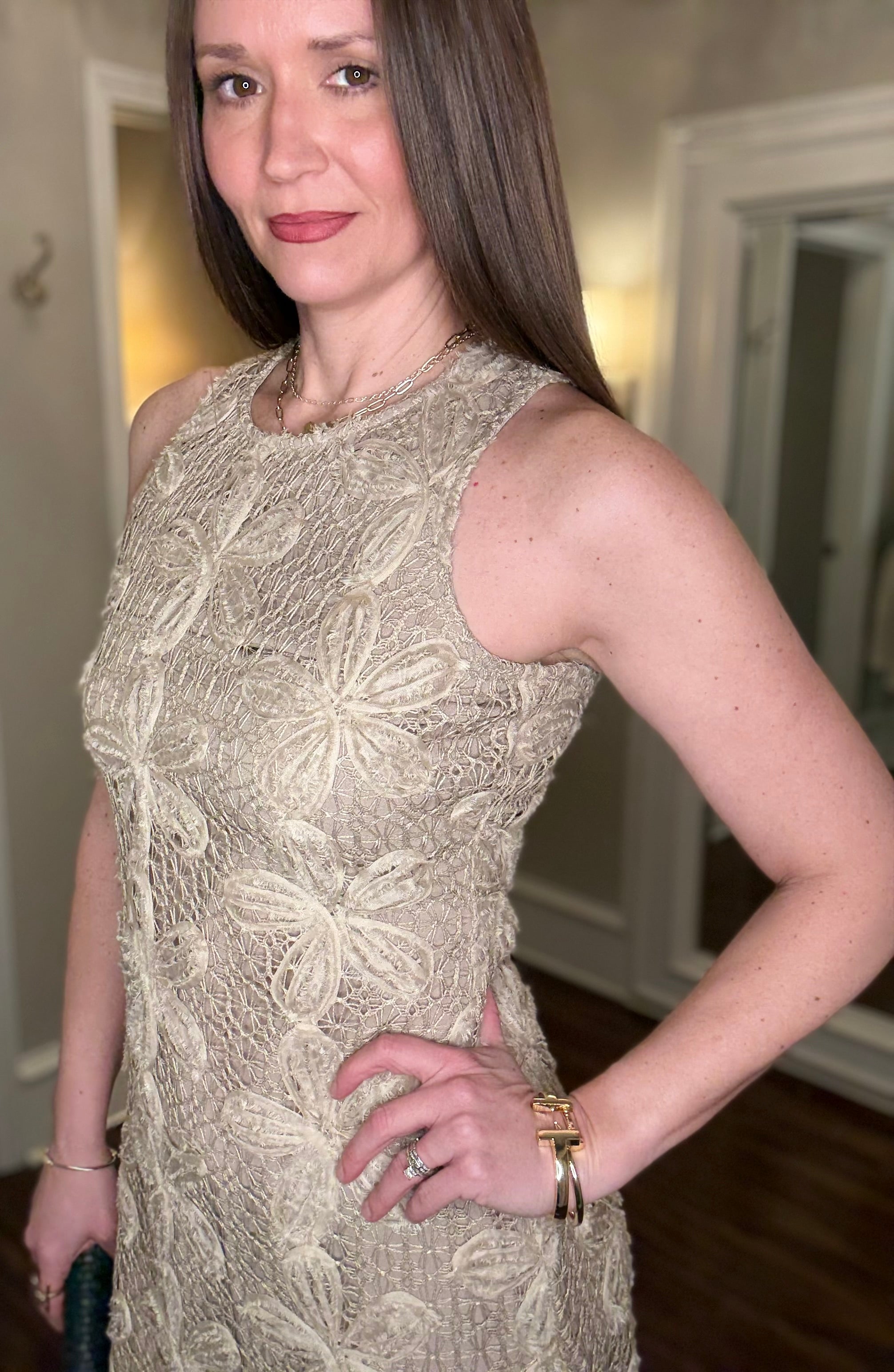 AUGUST APPAREL TAUPE LACE MAXI DRESS 2.5