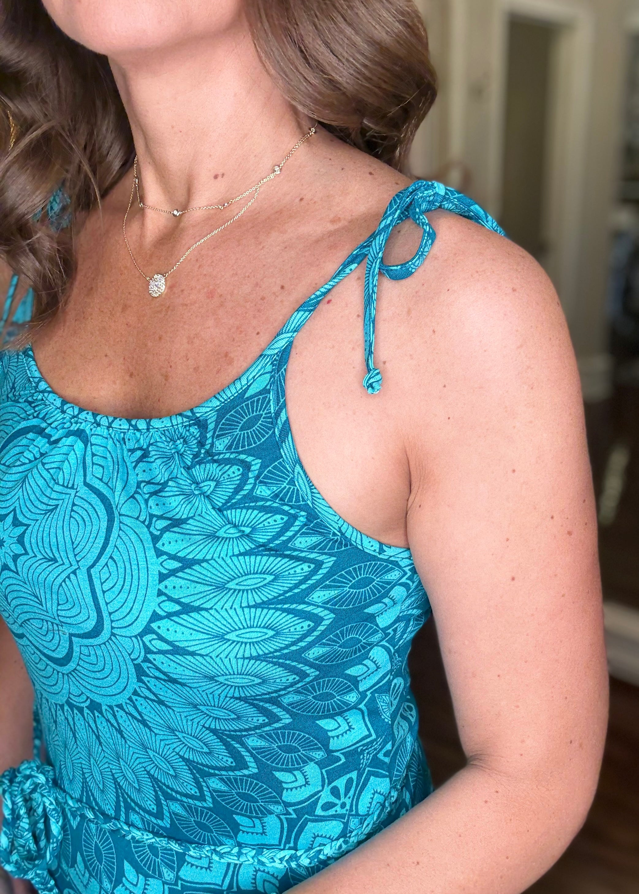 TURQUOISE DRESS WITH TIE DETAIL 12.23