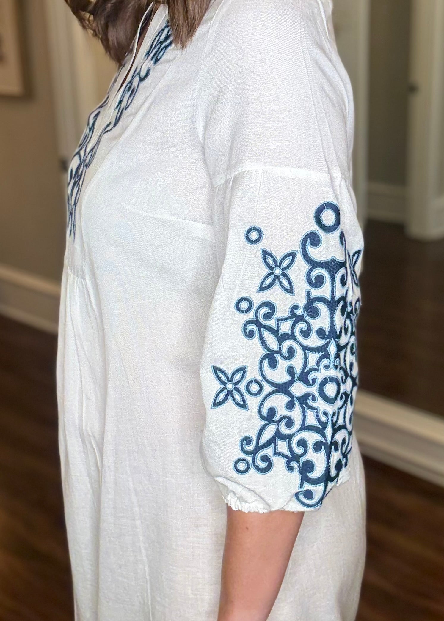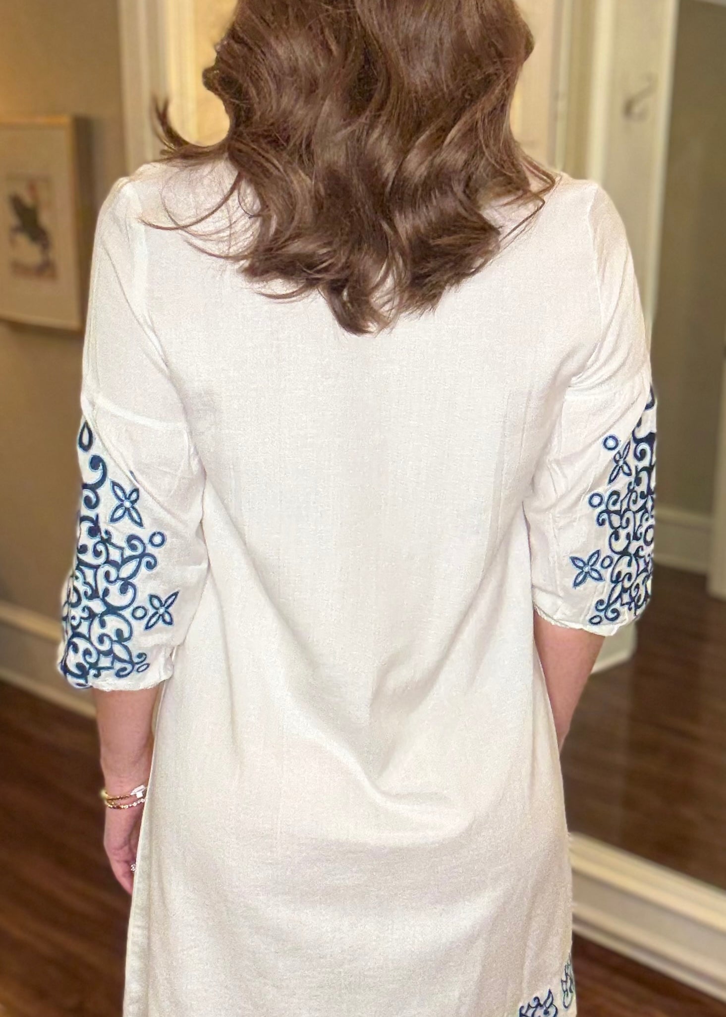 EMBROIDERED 3/4 SLEEVE DRESS 12.23