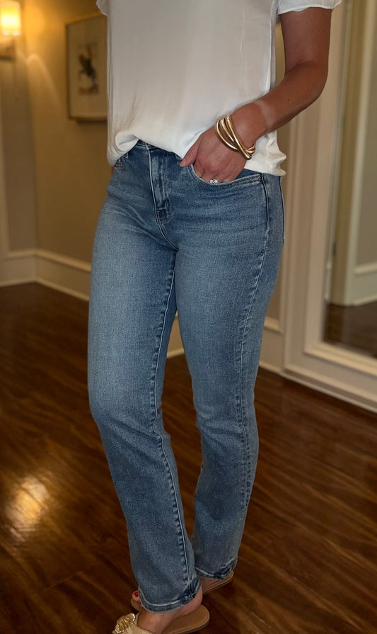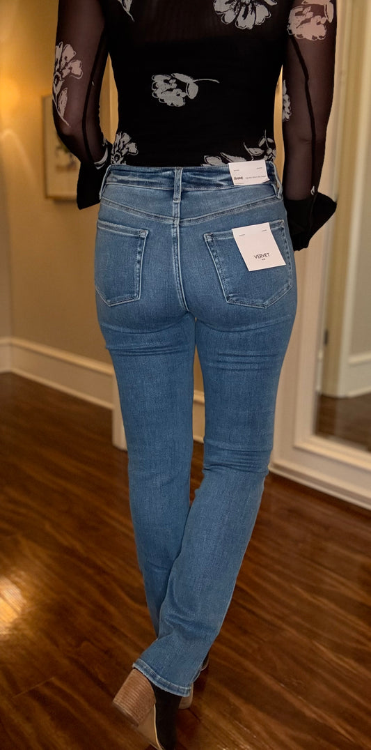 VERVET HIGH RISE LONG SLIM STRAIGHT JEAN 7.18