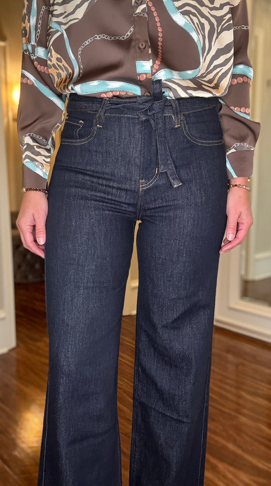 BAYEAS HIGH RISE BELTED WIDE LEG INDIGO 9.30