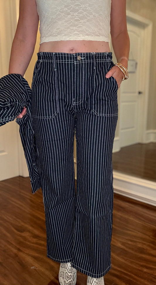 STRIPED DENIM STRAIGHT LEG JEANS 8.5