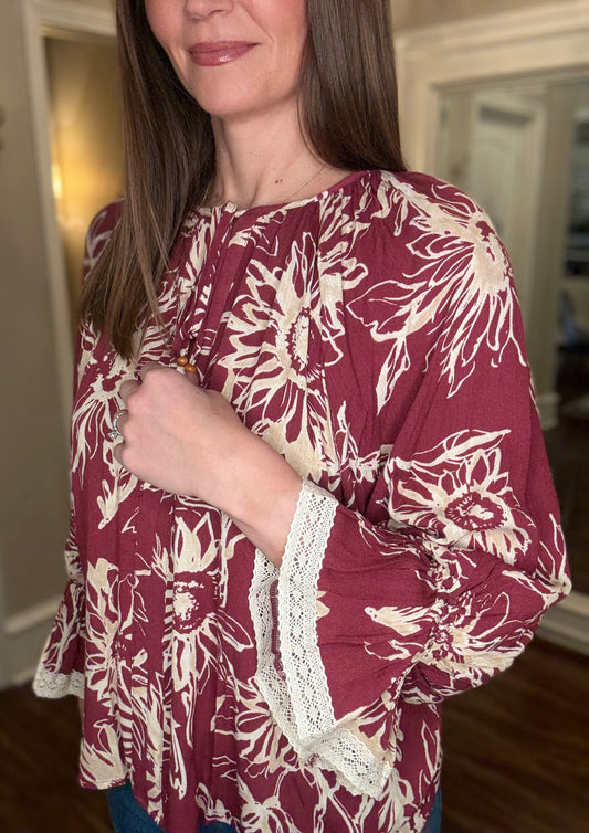 FLORAL PRINTED BLOUSE WITH FLUTTER HEM 12.23