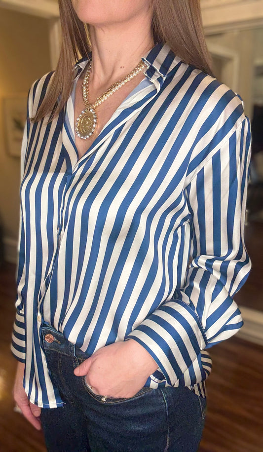 BLUE STRIPED SATIN BLOUSE 12.23