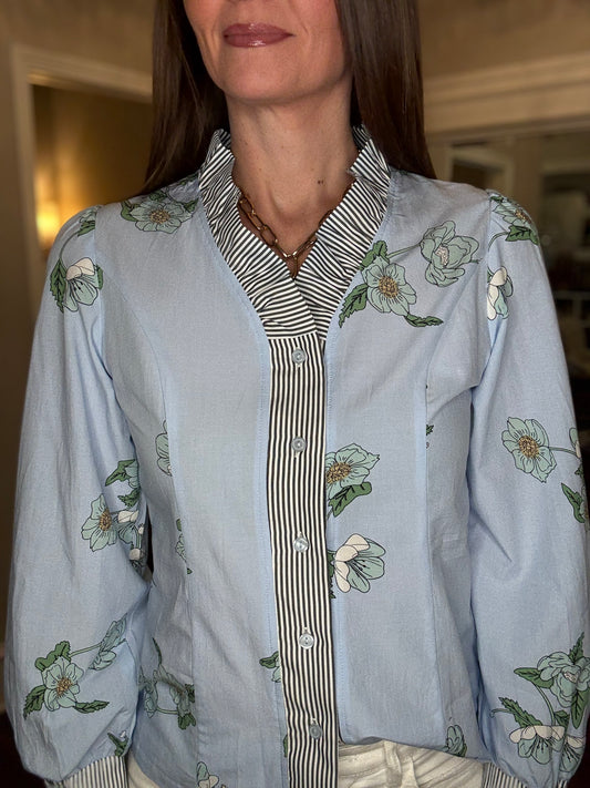 LOVE SOFT BLUE RUFFLE TRIM TOP 2.27
