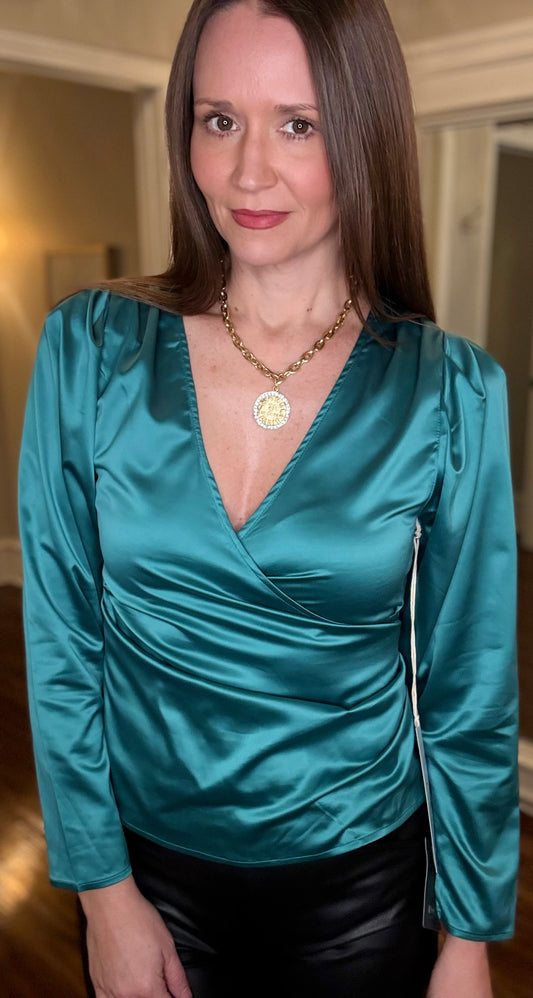 HOLIDAY SATIN SURPLICE TOP 11.24