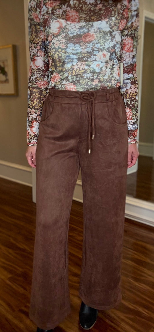 ENTRO BROWN WIDE LEG FAUX SUEDE PANTS 9.11