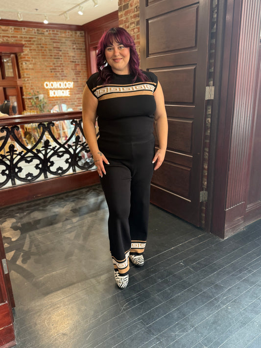 ENTRO EXTENDED SIZES CAMEL AND BLACK SLEEVELESS SWEATER 9.11