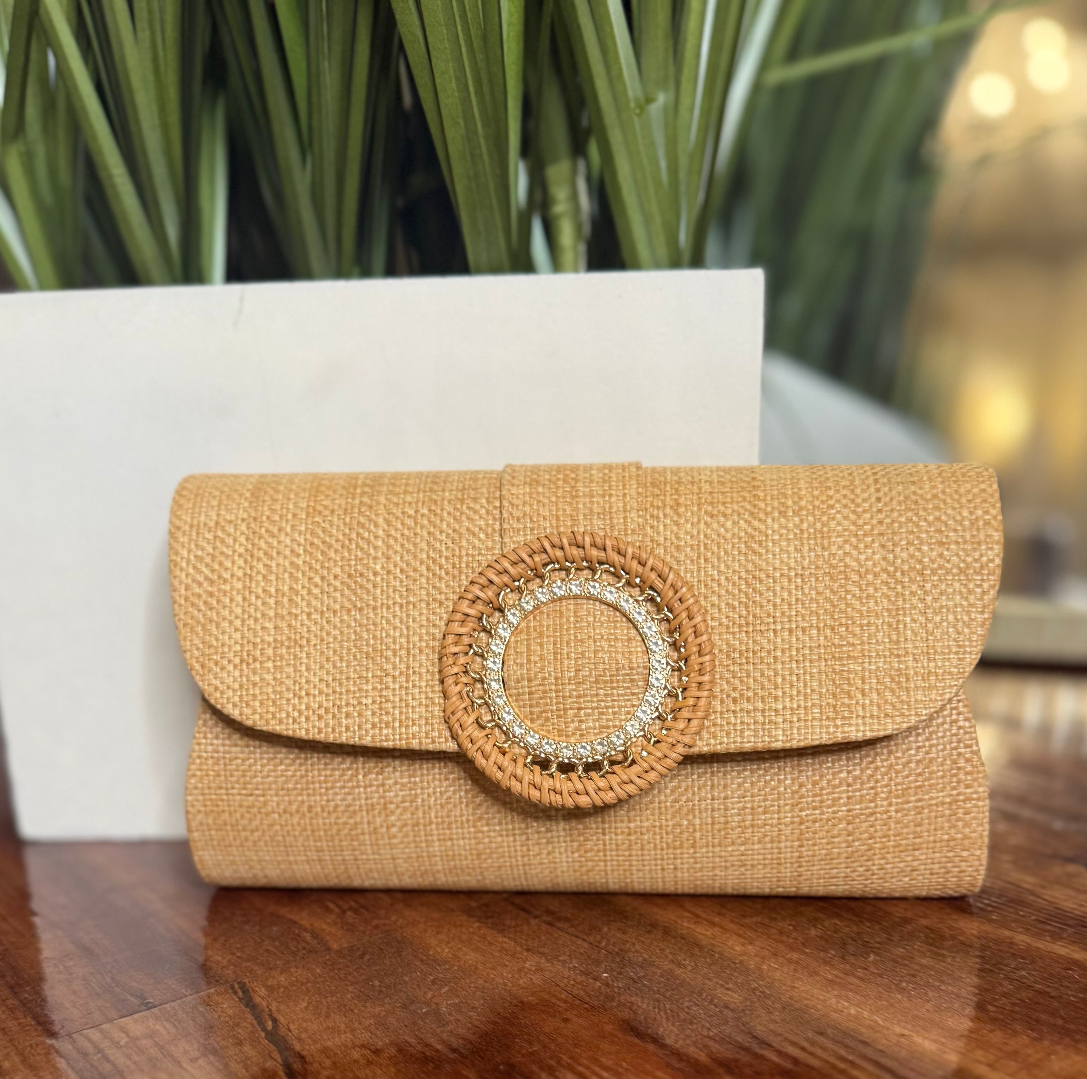 Woven circle with rhinestone embellishment