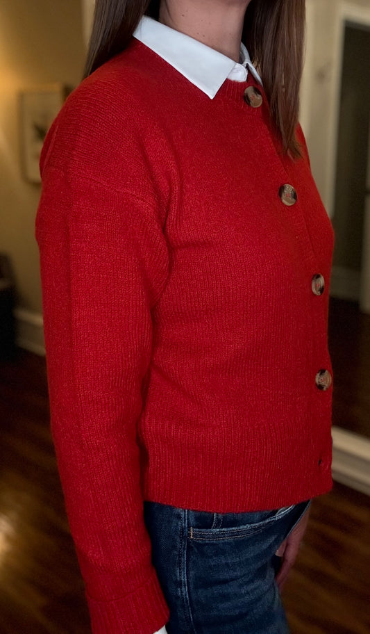 ACTIVE BASIC NOTCHED COLLAR BUTTON SWEATER JACKET 11.4