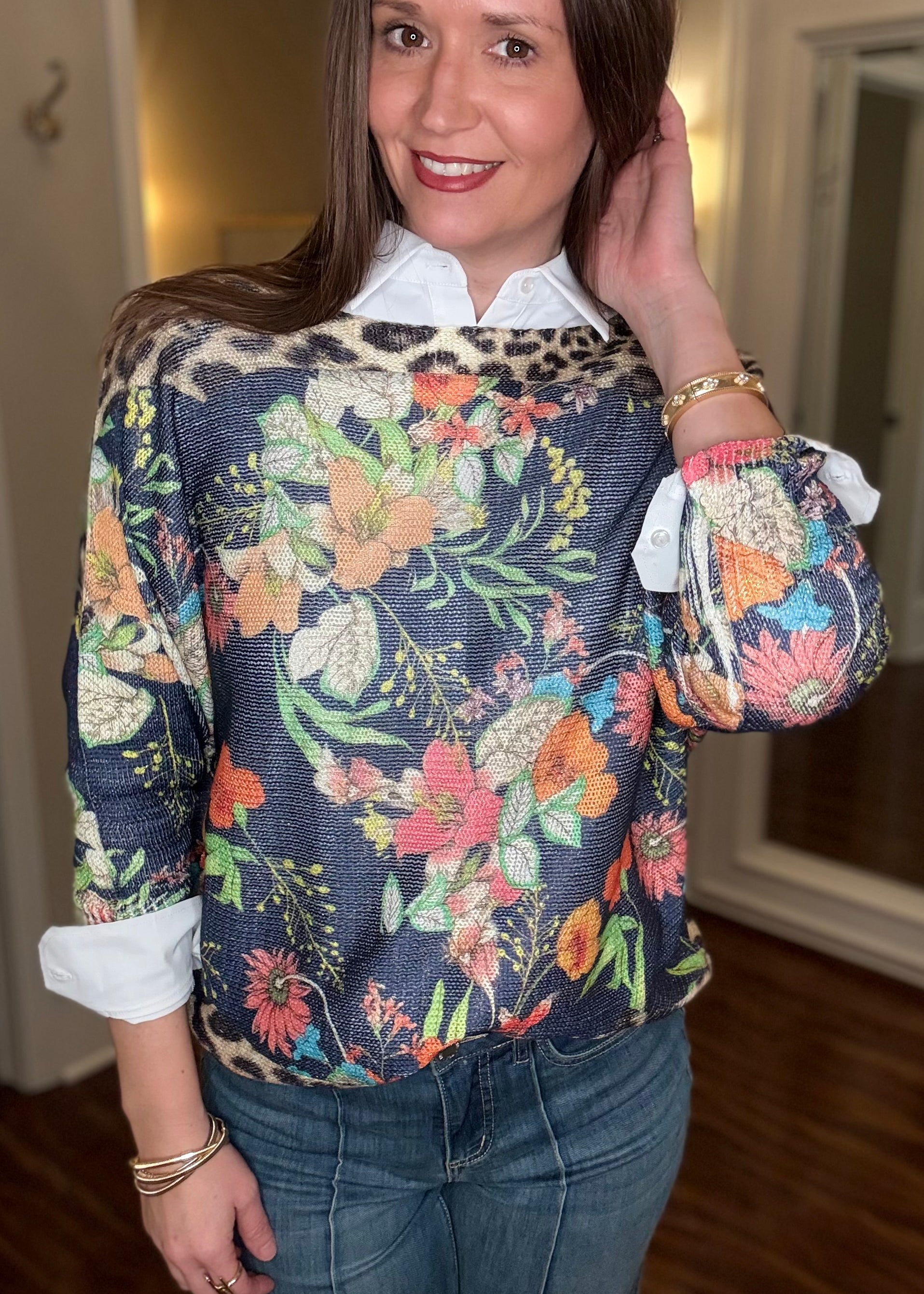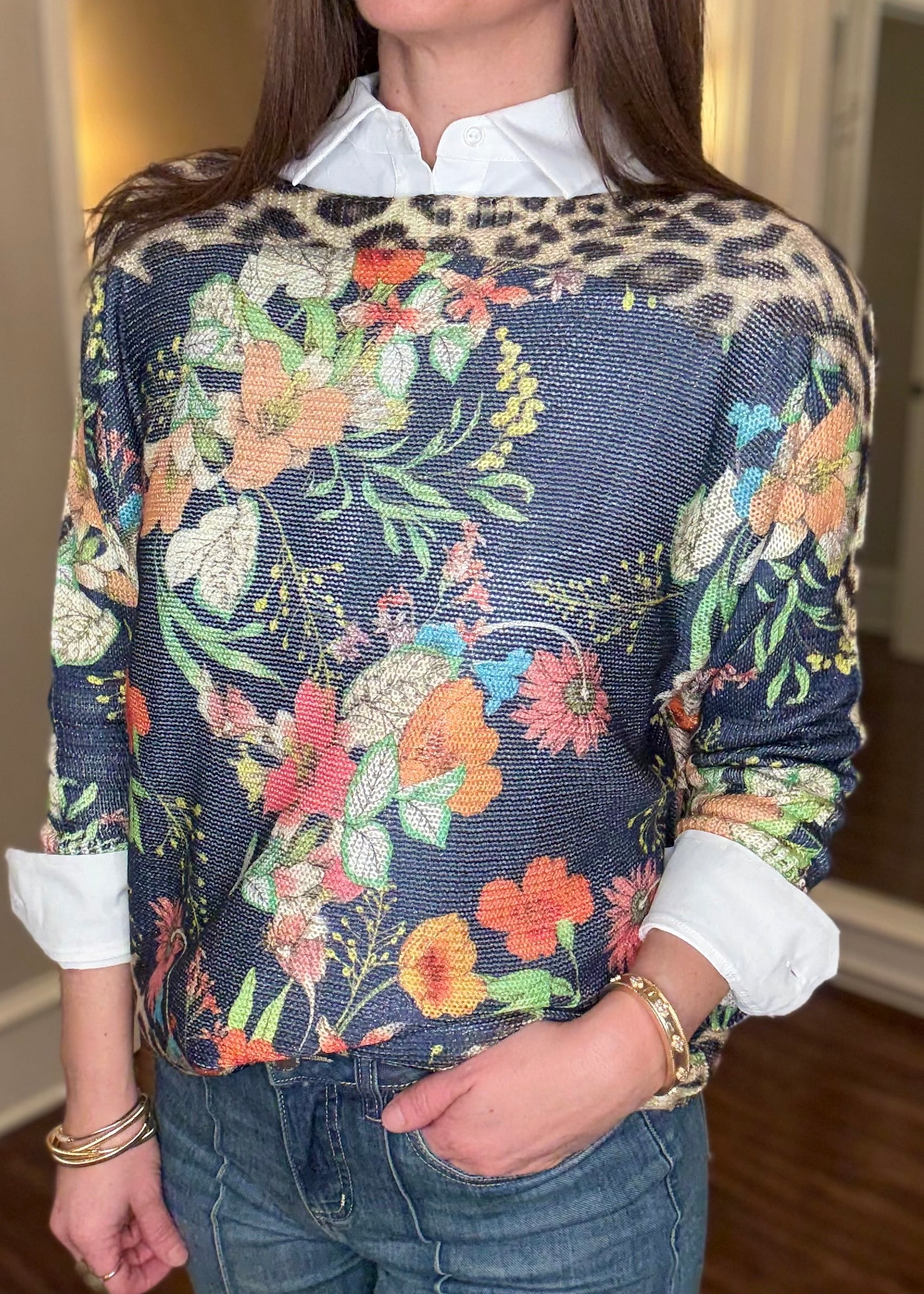 BRAND BAZAR NAVY FLORAL/LEOPARD SWEATER 2.5