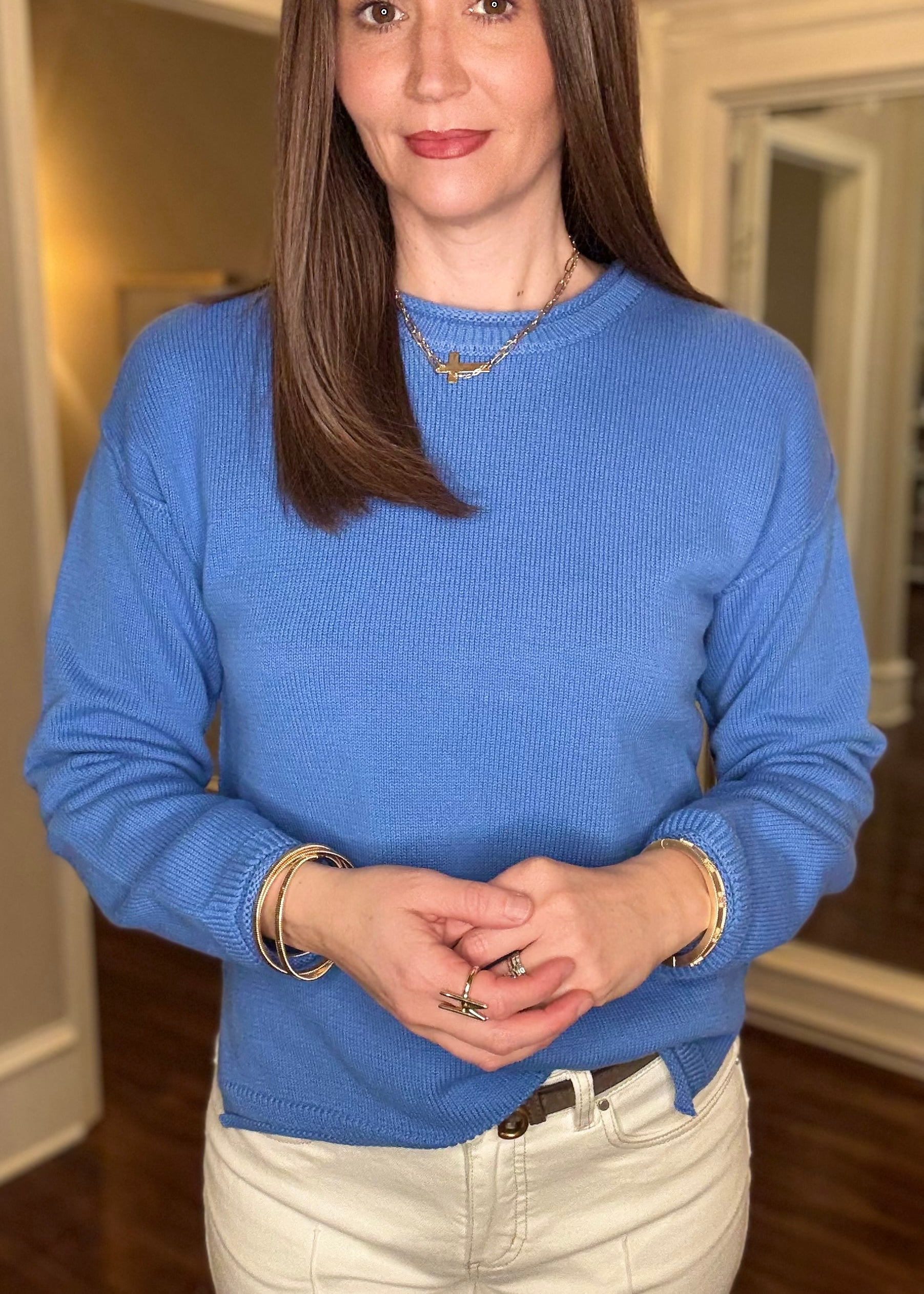 MARY SQUARE BLUE AND WHITE SWEATER 2.23