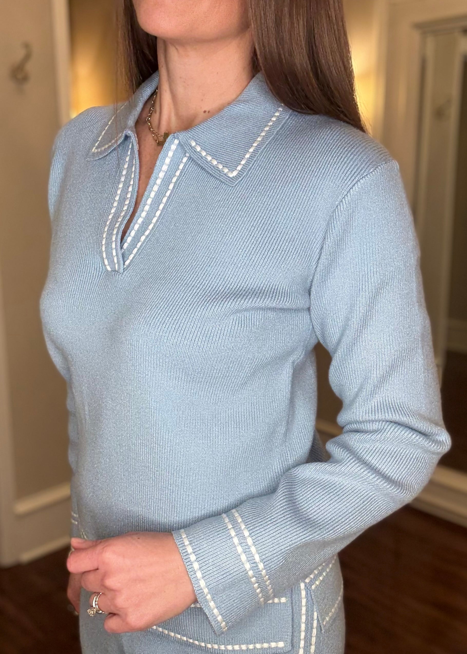 AUGUST APPAREL STITCH DETAILED POLO KNIT TOP 2.5