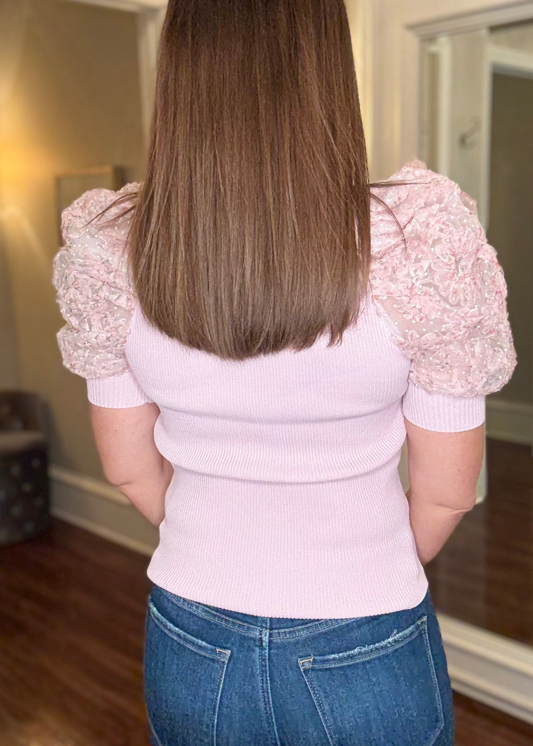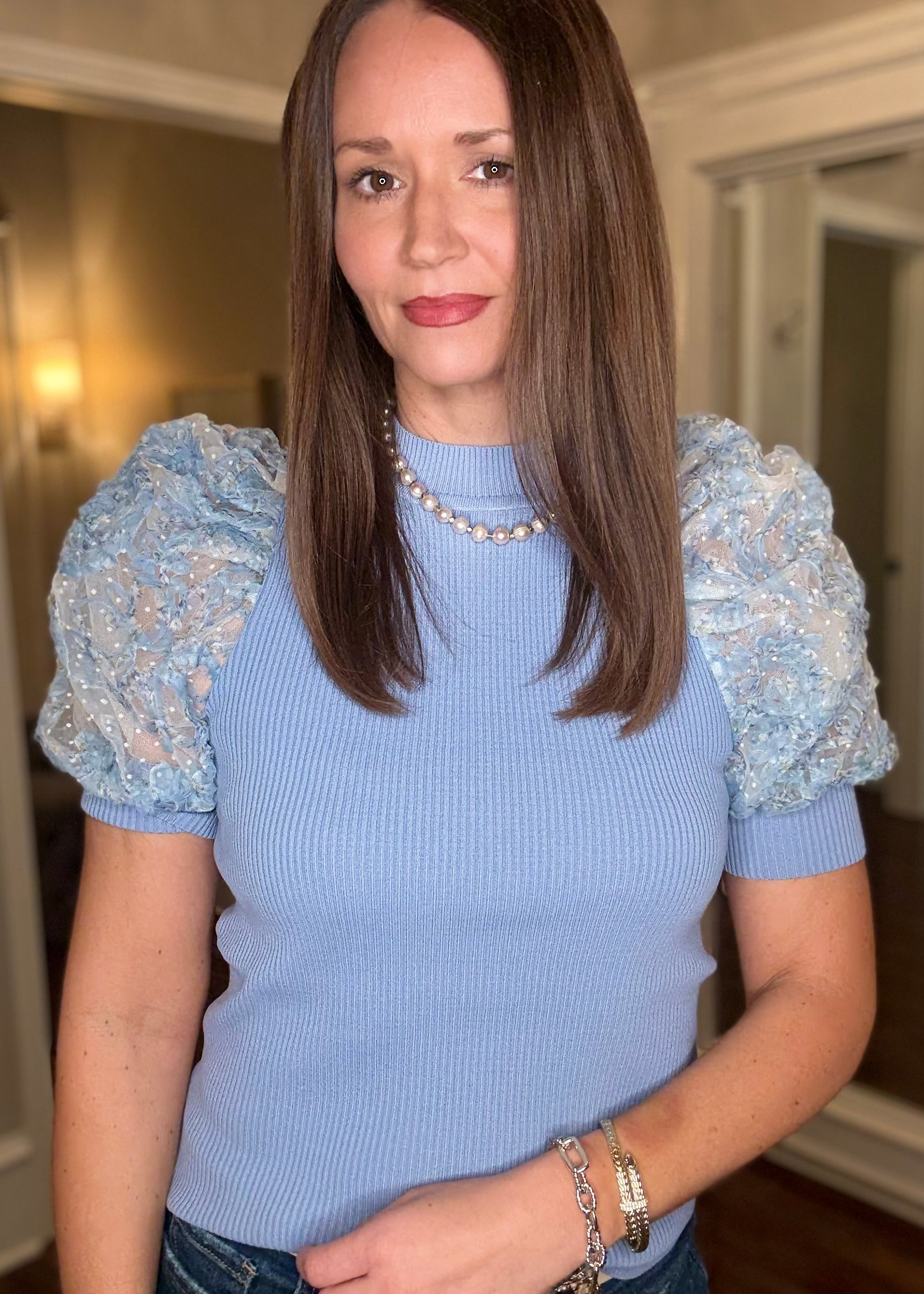 LACE SLEEVE RIBBED TOP 1.9 (multiple colors)