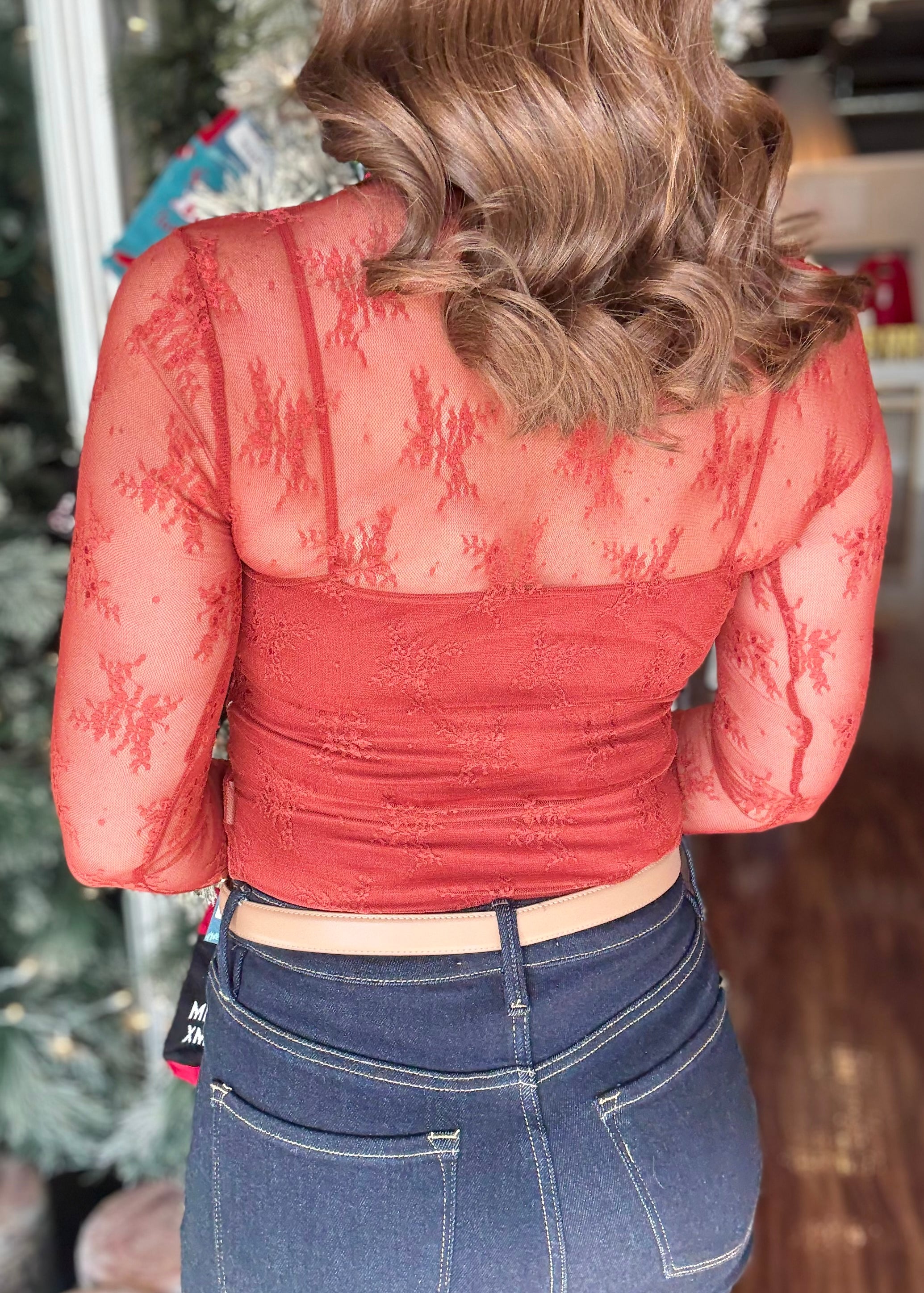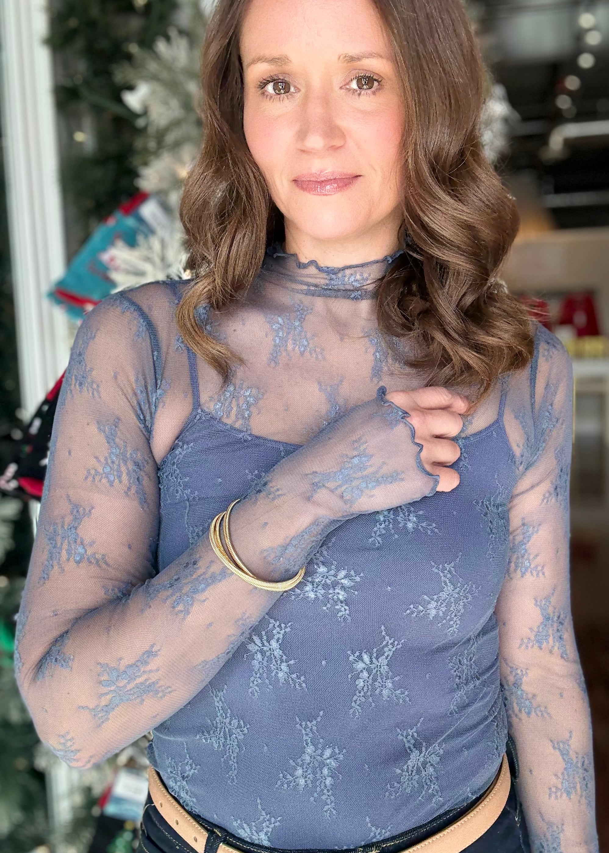HEM AND THREAD MOCK NECK LACE TOP (multiple colors) 12.12