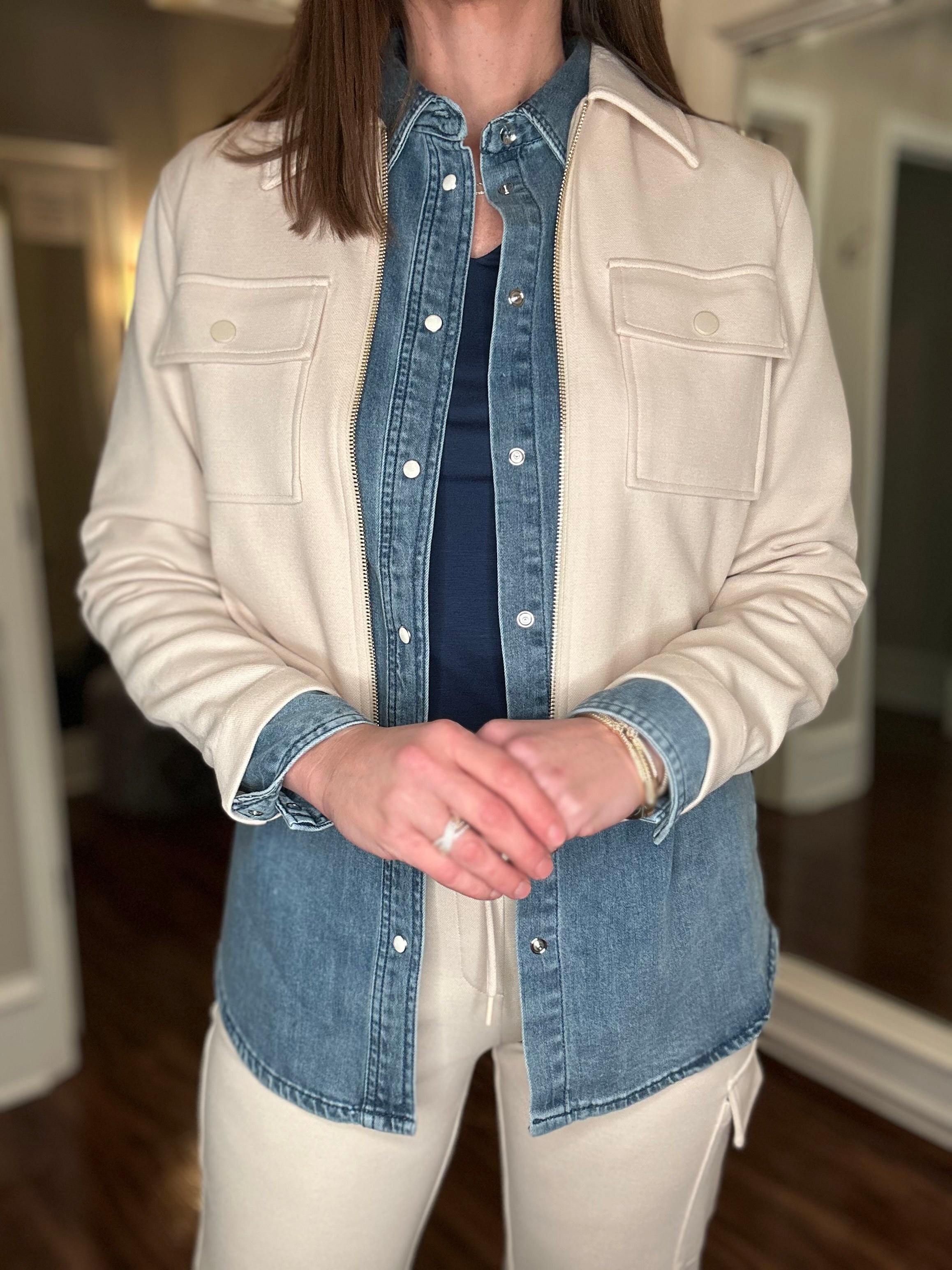 ENTRO OATMEAL AND BLUE EMBROIDERED TOP 2.18
