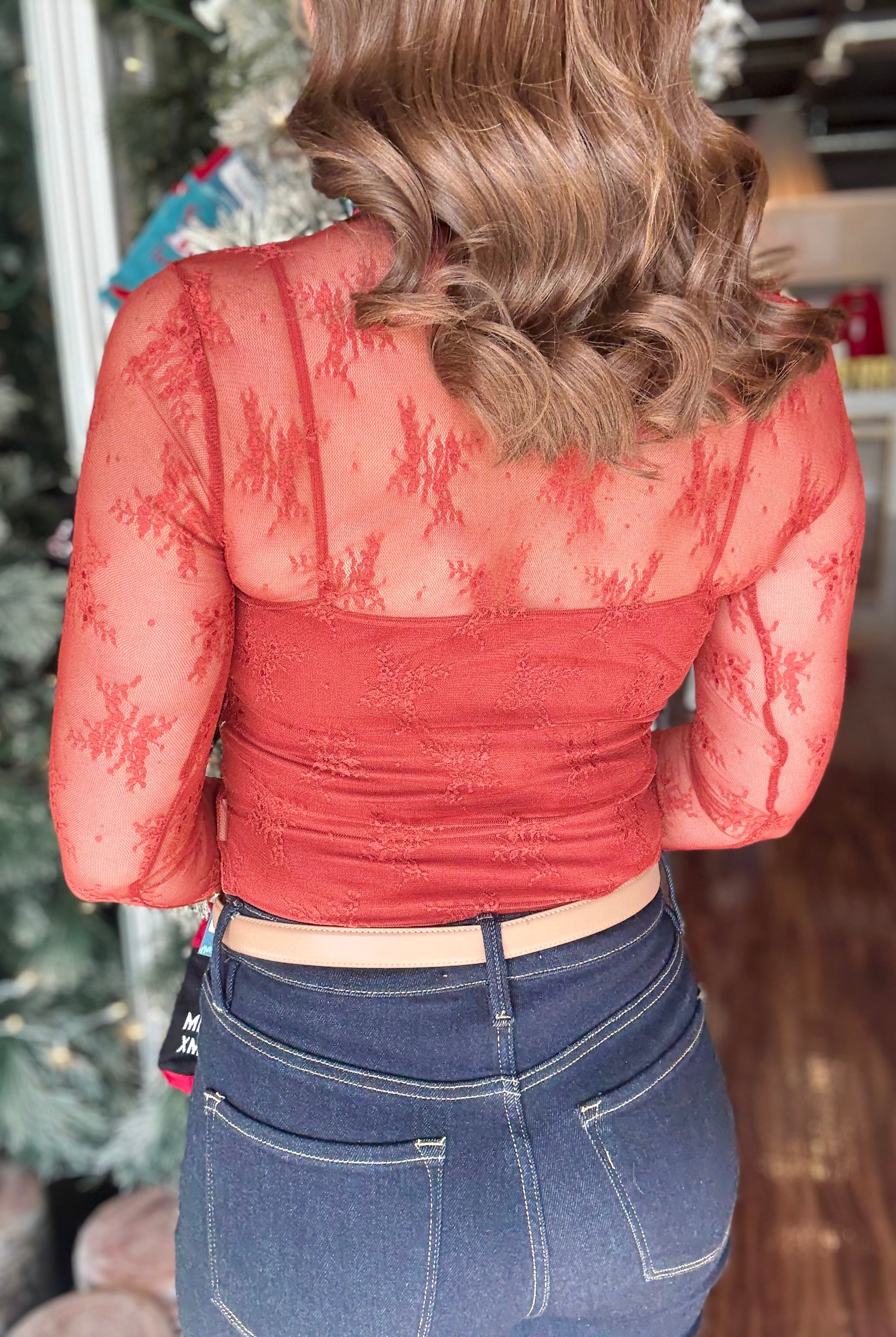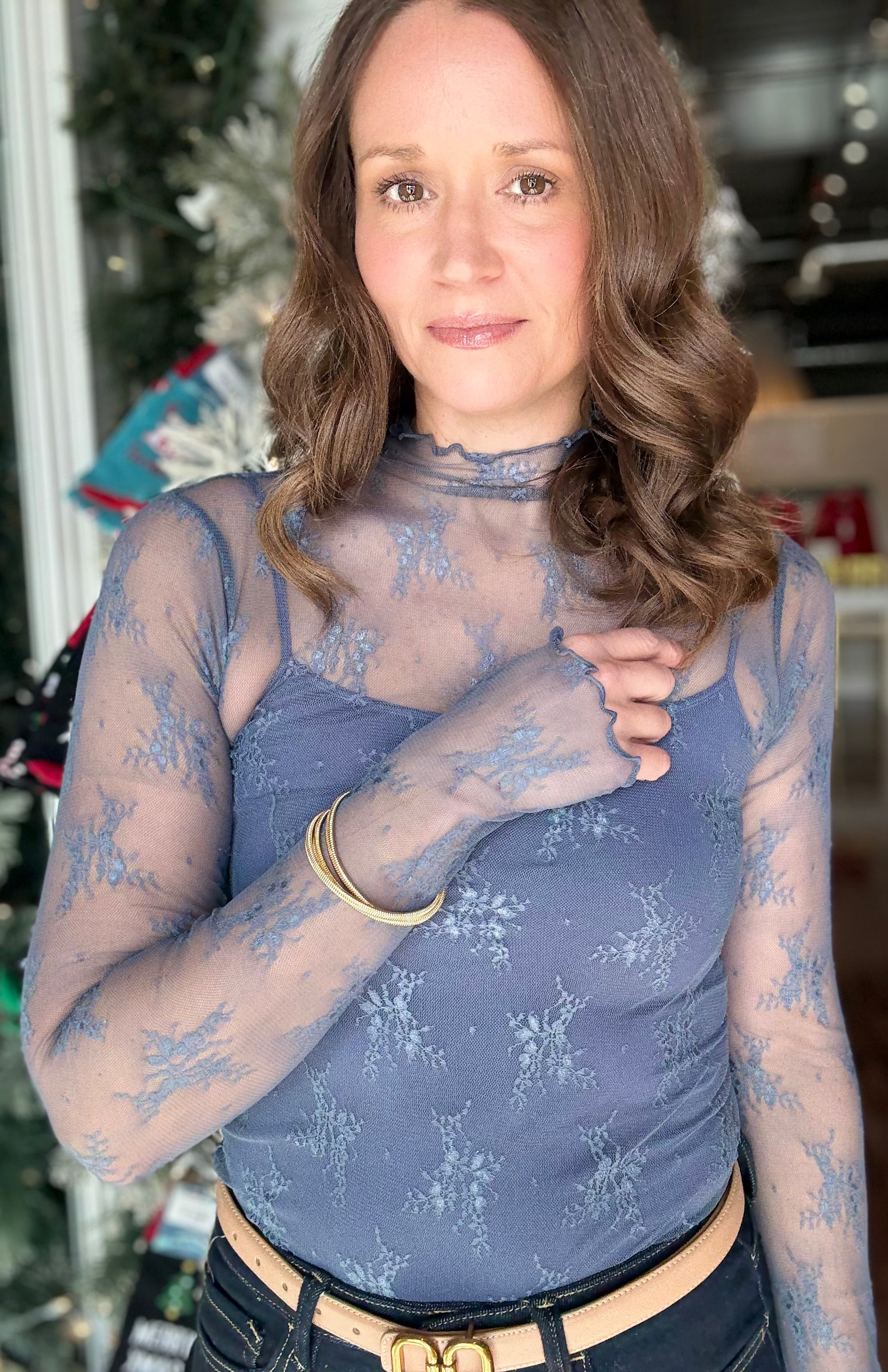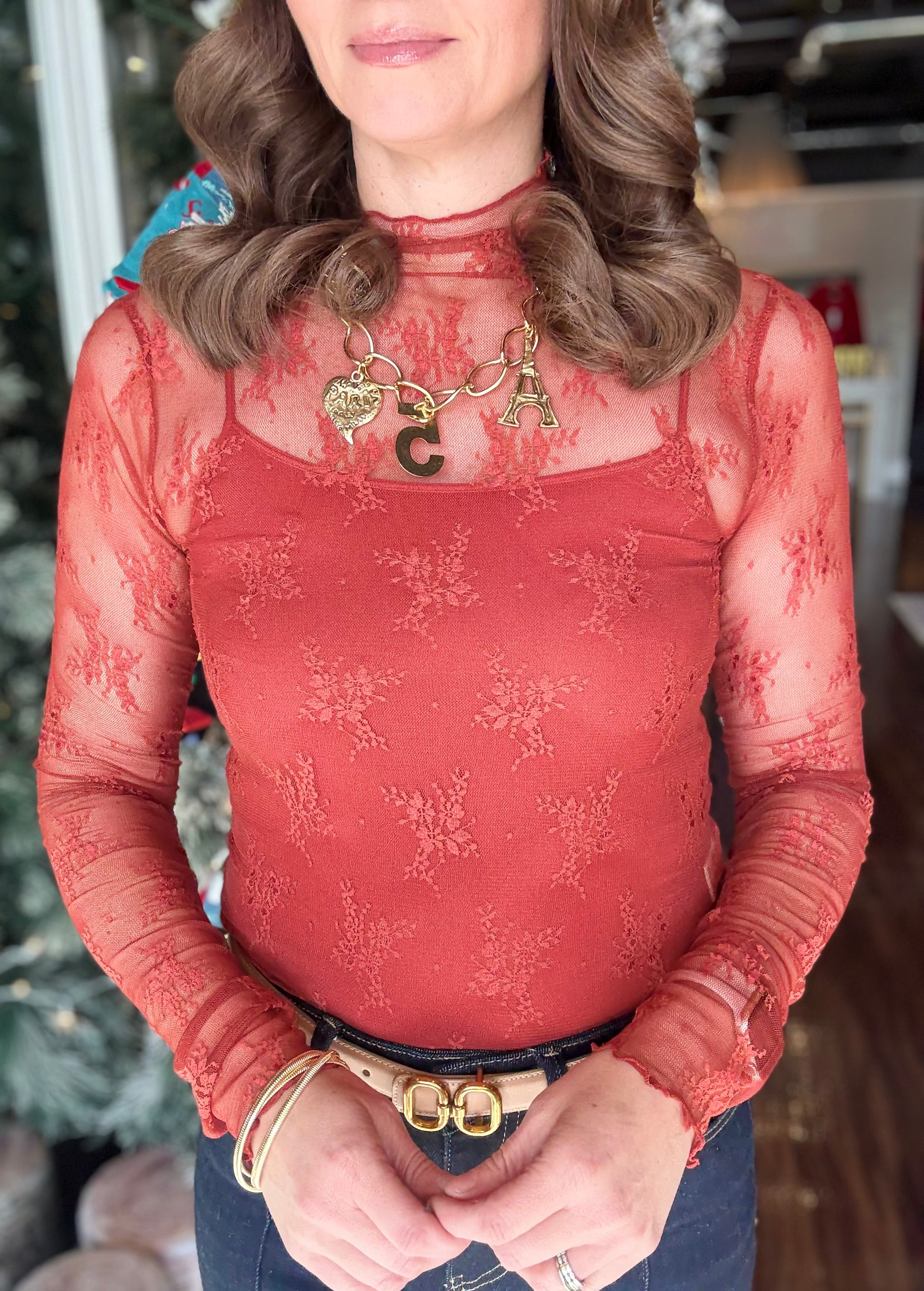 HEM AND THREAD MOCK NECK LACE TOP (multiple colors) 12.12
