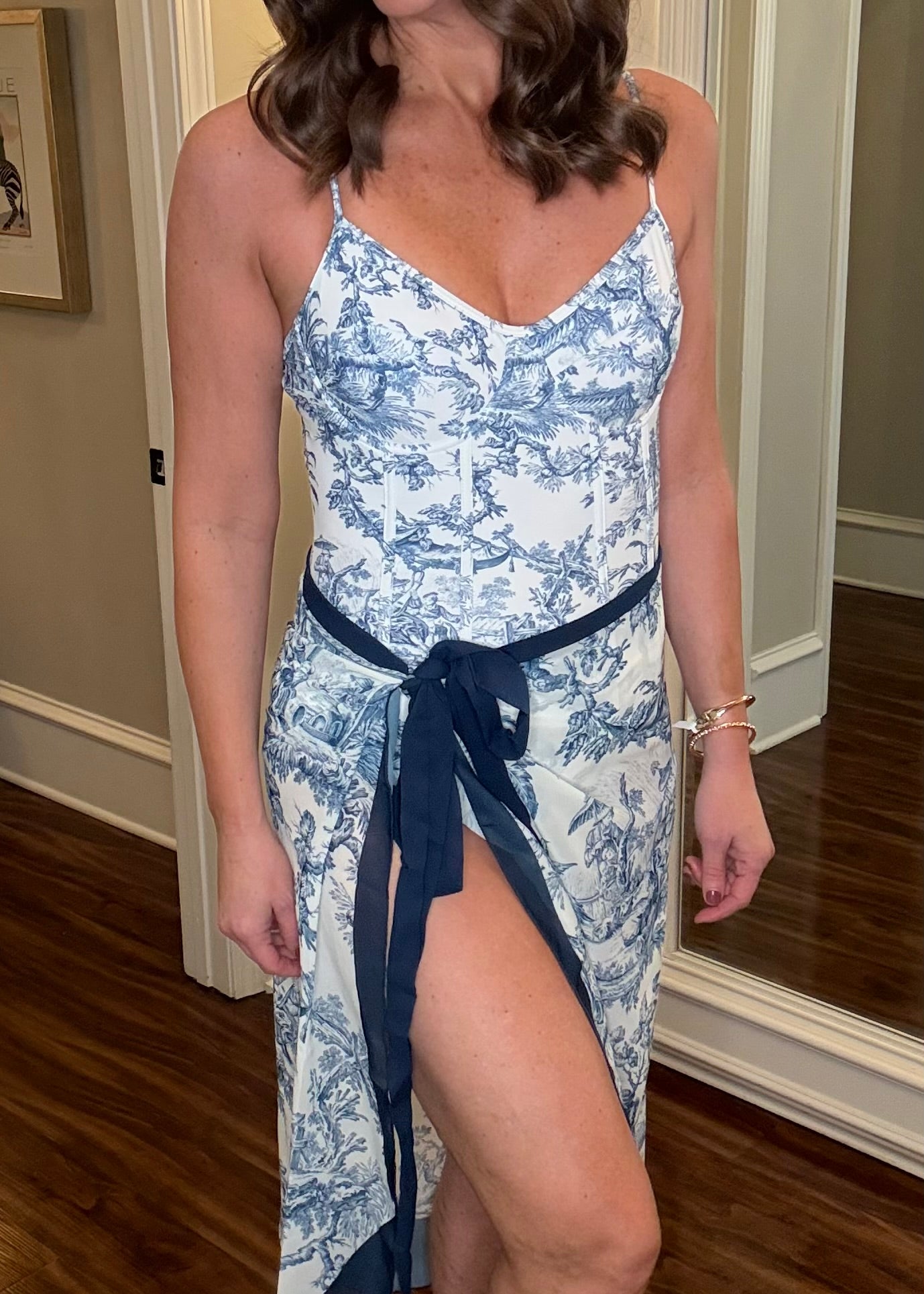 TOILE PRINT SWIMSUIT WITH COVER UP 12.23