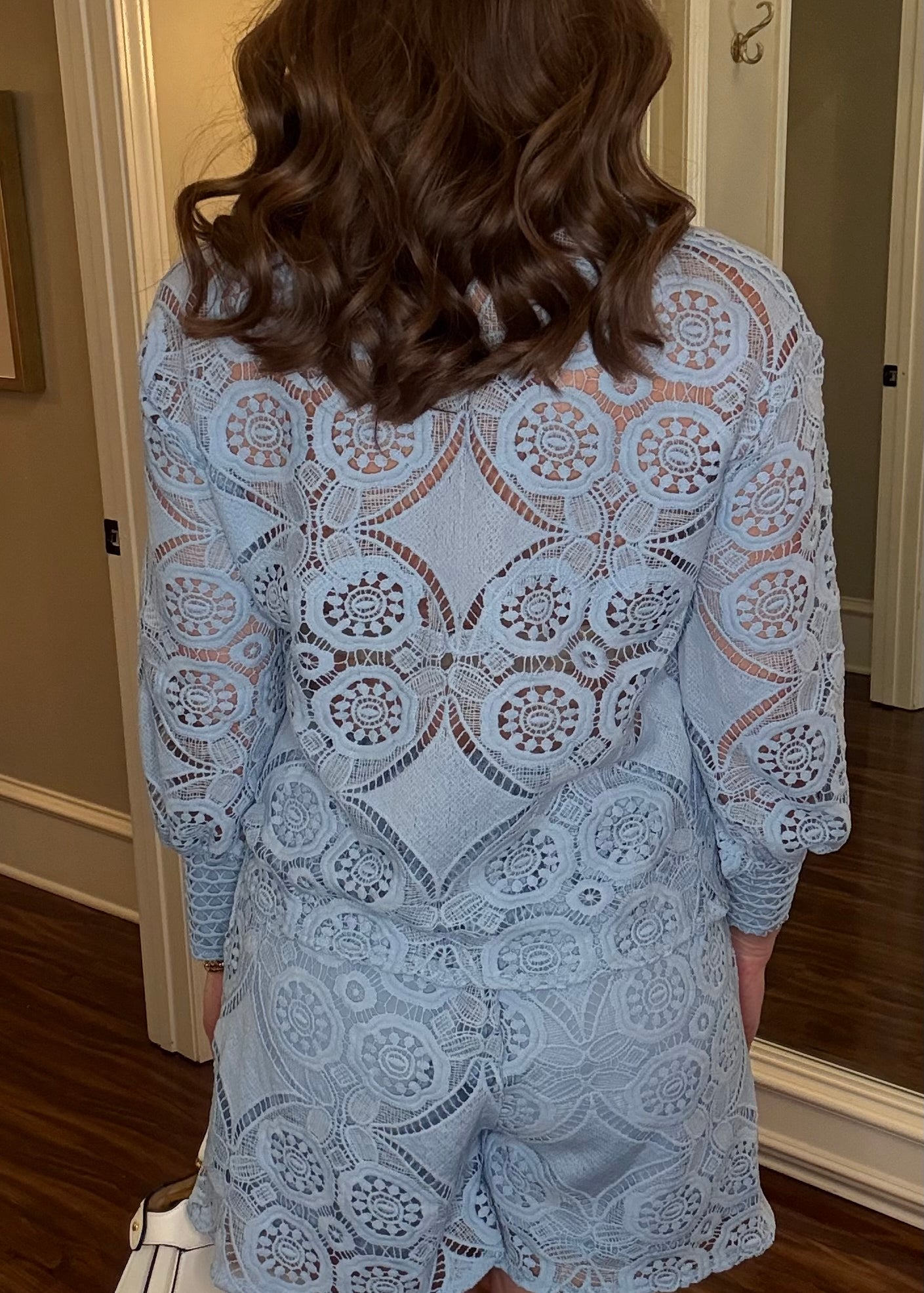 LIGHT BLUE LACE BLOUSE AND SHORT SET 12.23