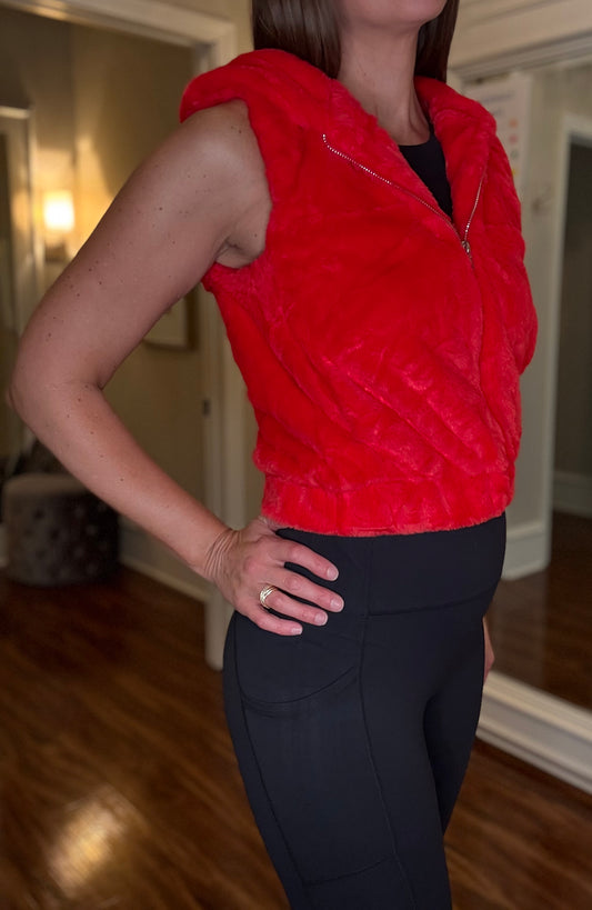 Sold outRED FAUX FUR HOODIE 8.5