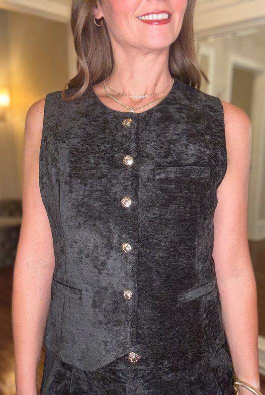 MOLLY BRACKEN CRUSHED VELVET VEST WITH GOLD BUTTONS 8.15