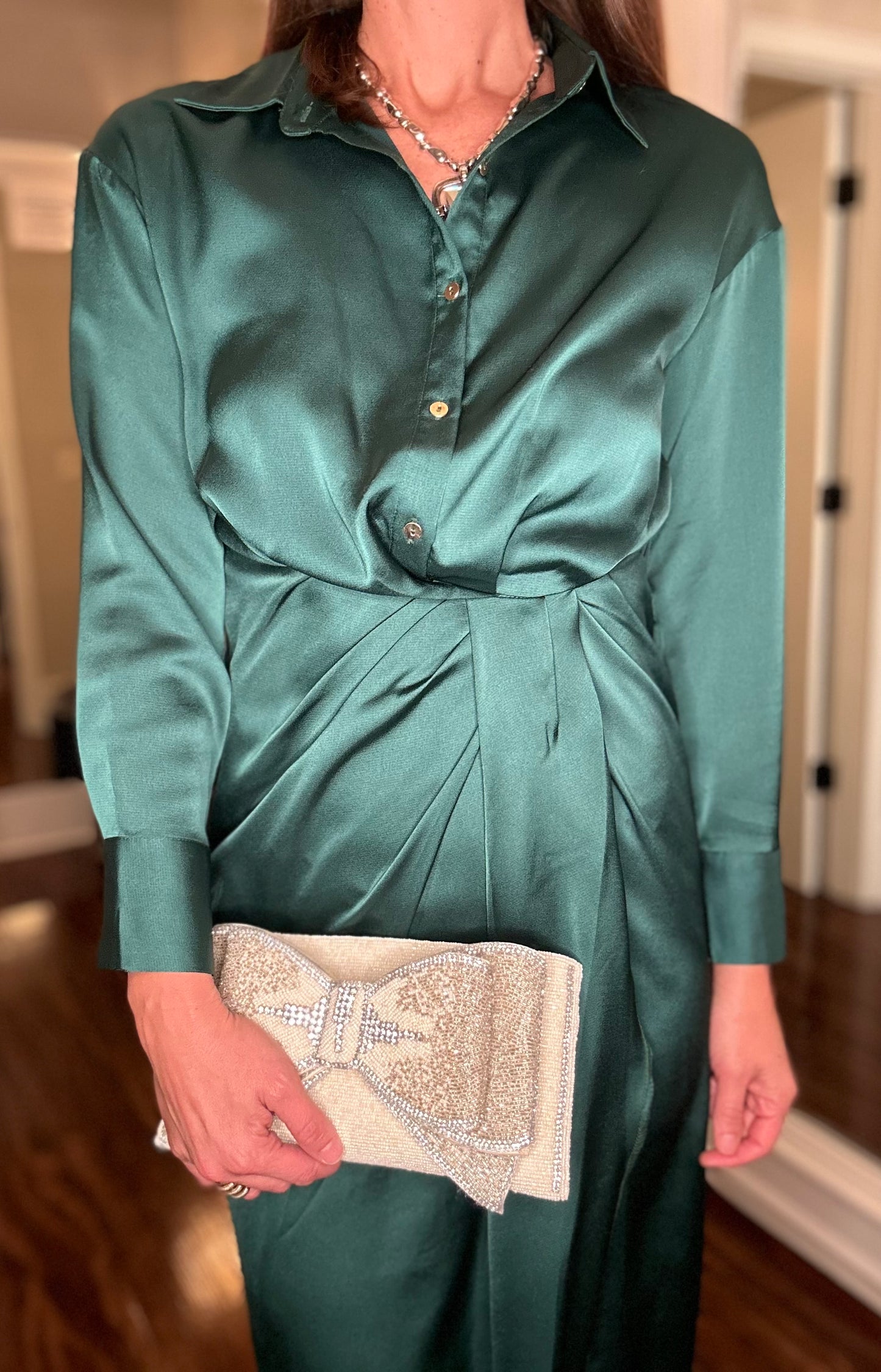 DRESS DAY RUCHED SHIRT SATIN MIDI DRESS 10.4