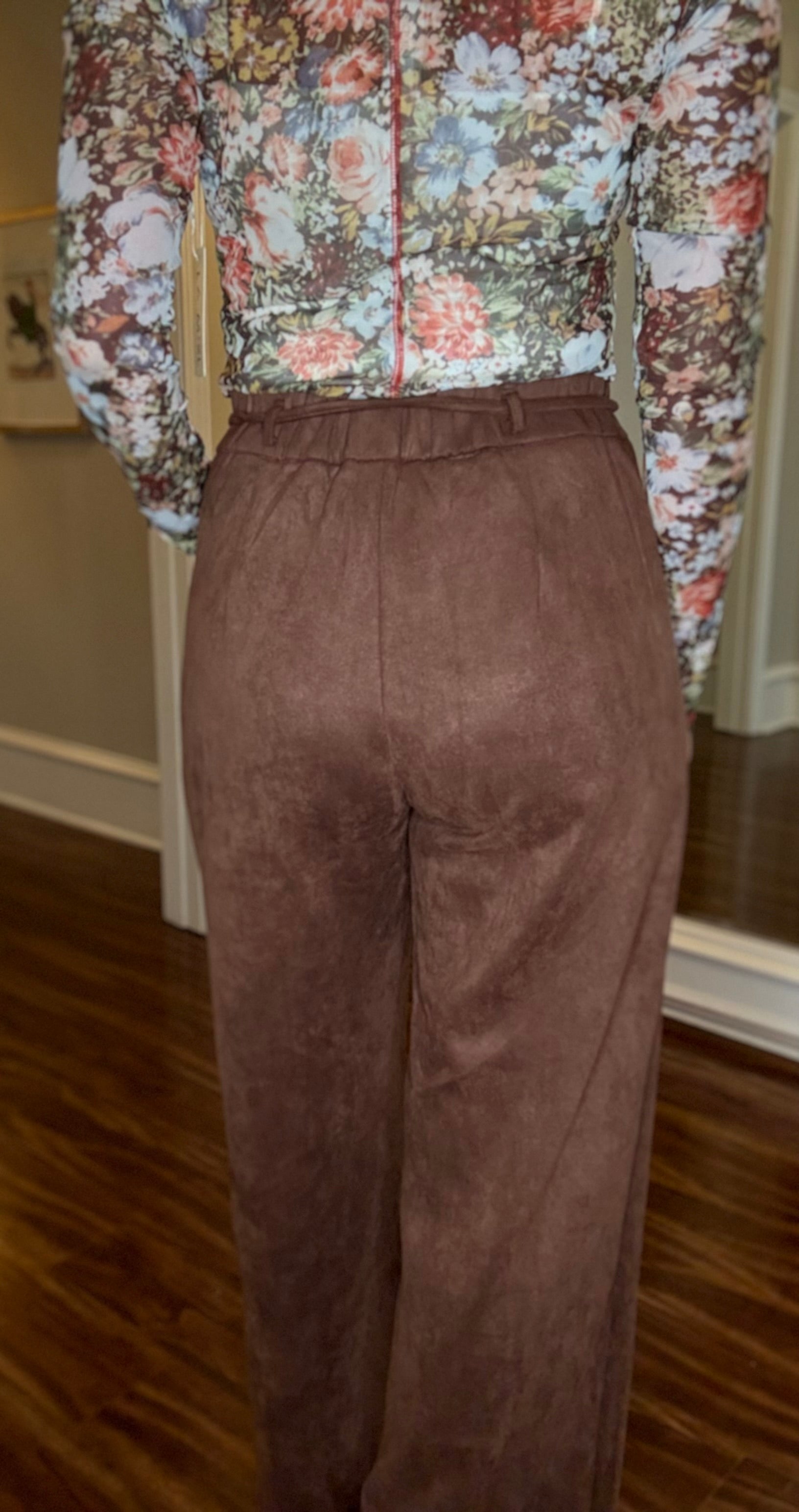 ENTRO BROWN WIDE LEG FAUX SUEDE PANTS 9.11