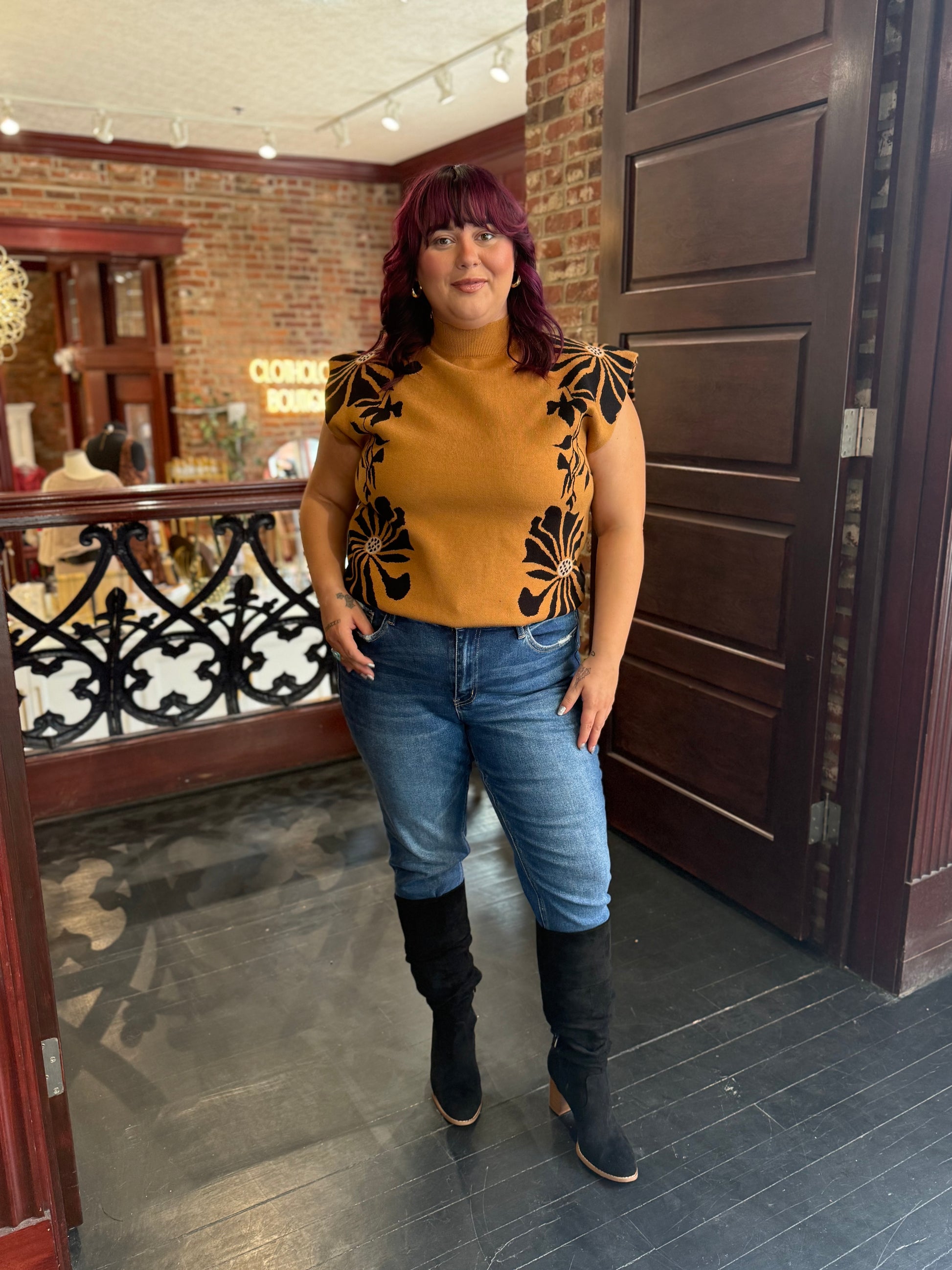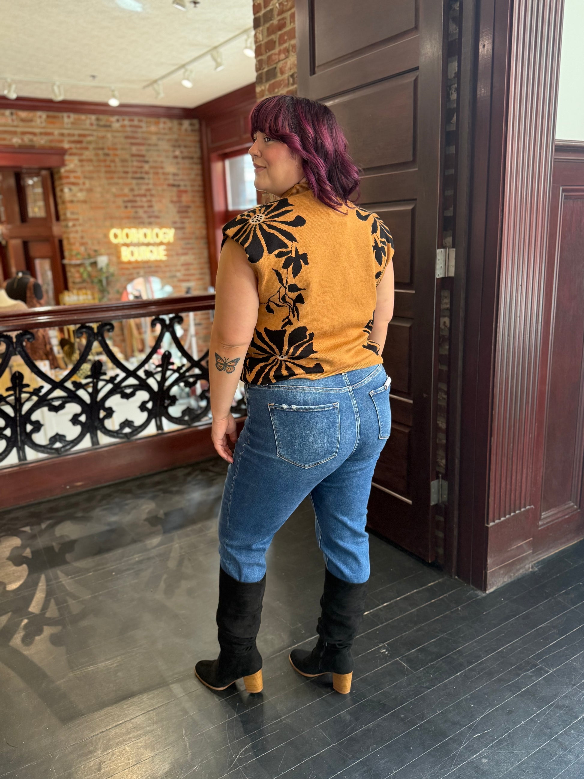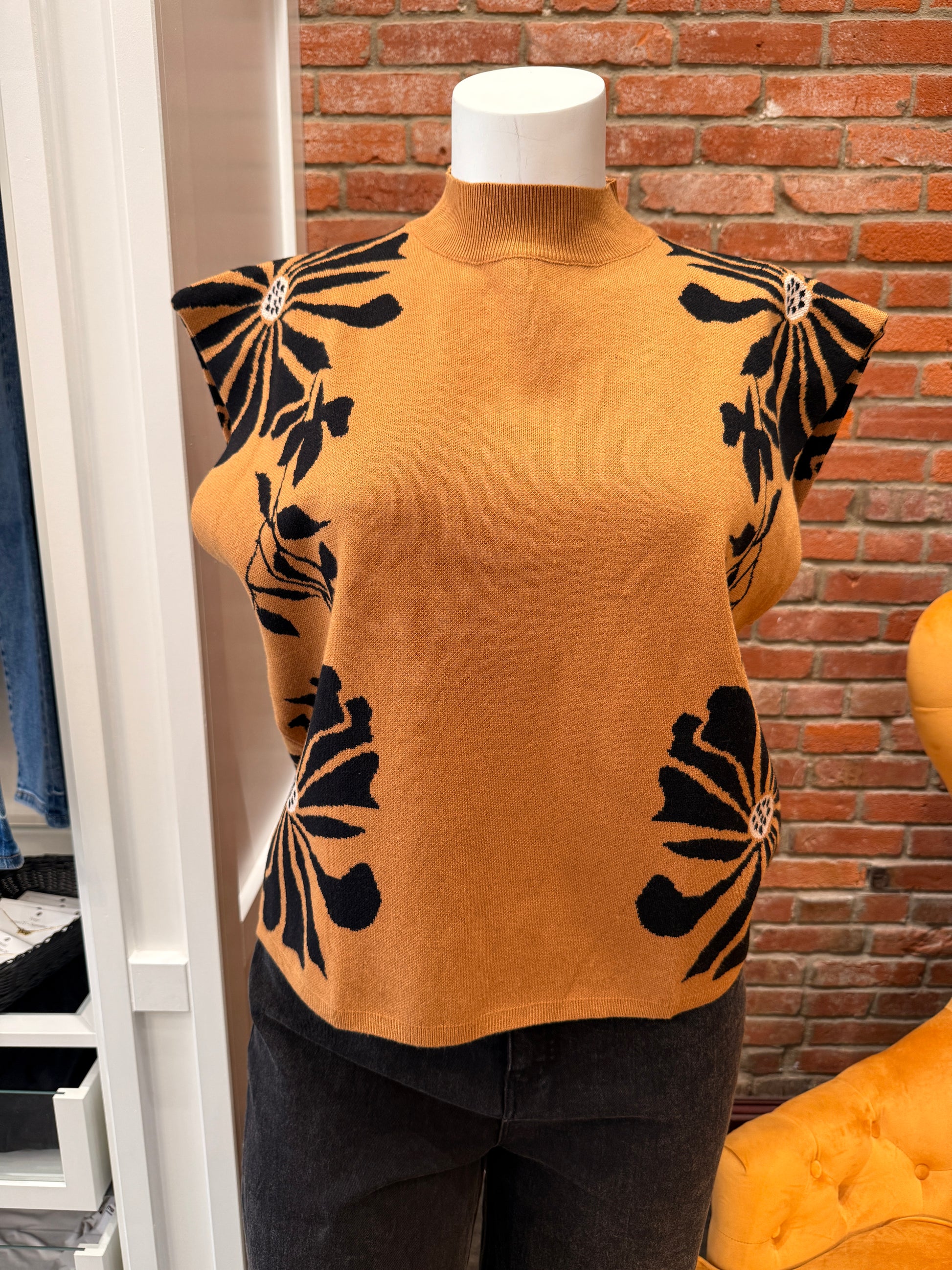 ENTRO EXTENDED SIZES CAMEL AND BLACK SLEEVELESS SWEATER 9.11