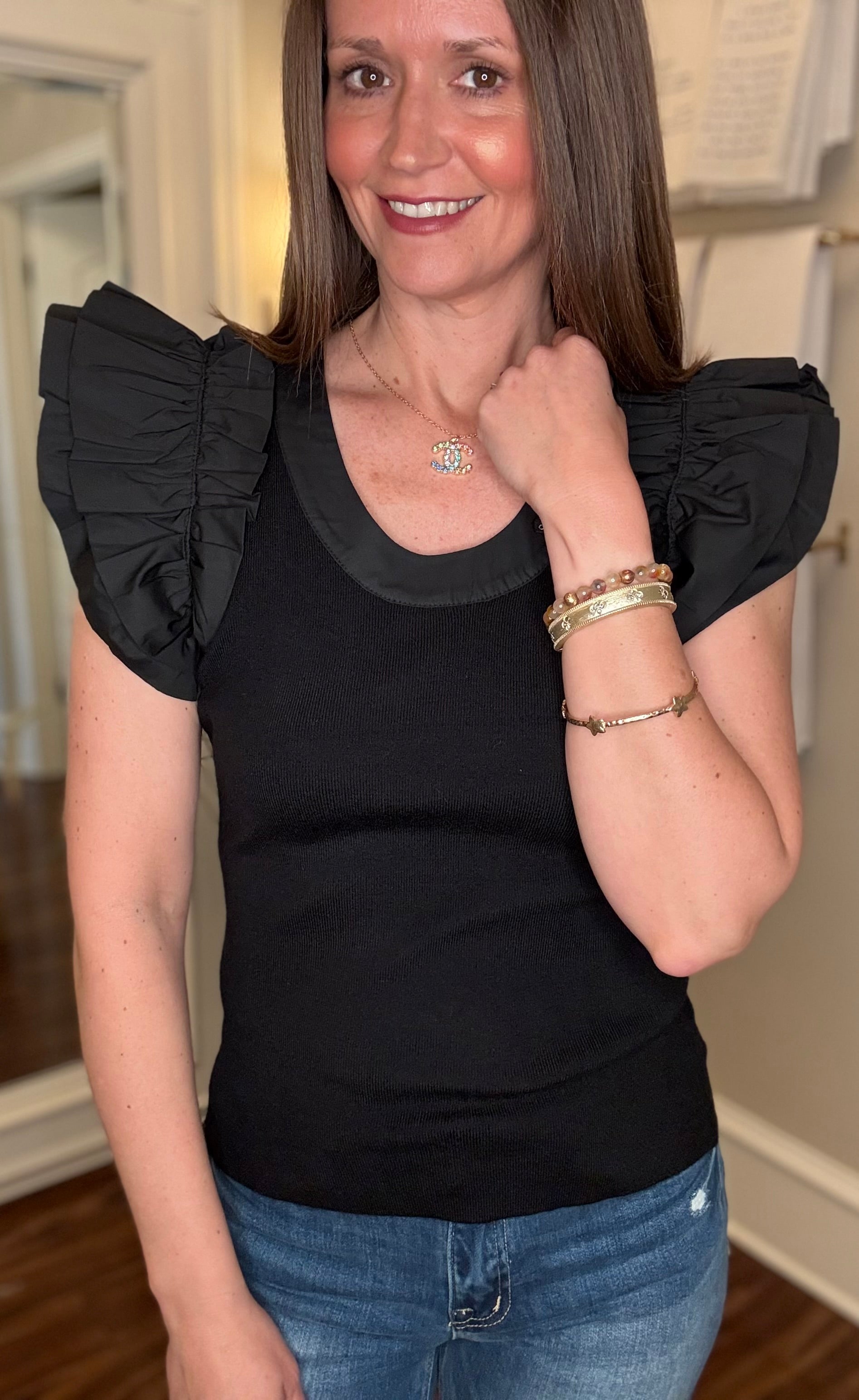FATE RUFFLE SLEEVE FITTED SWEATER TOP 4.8