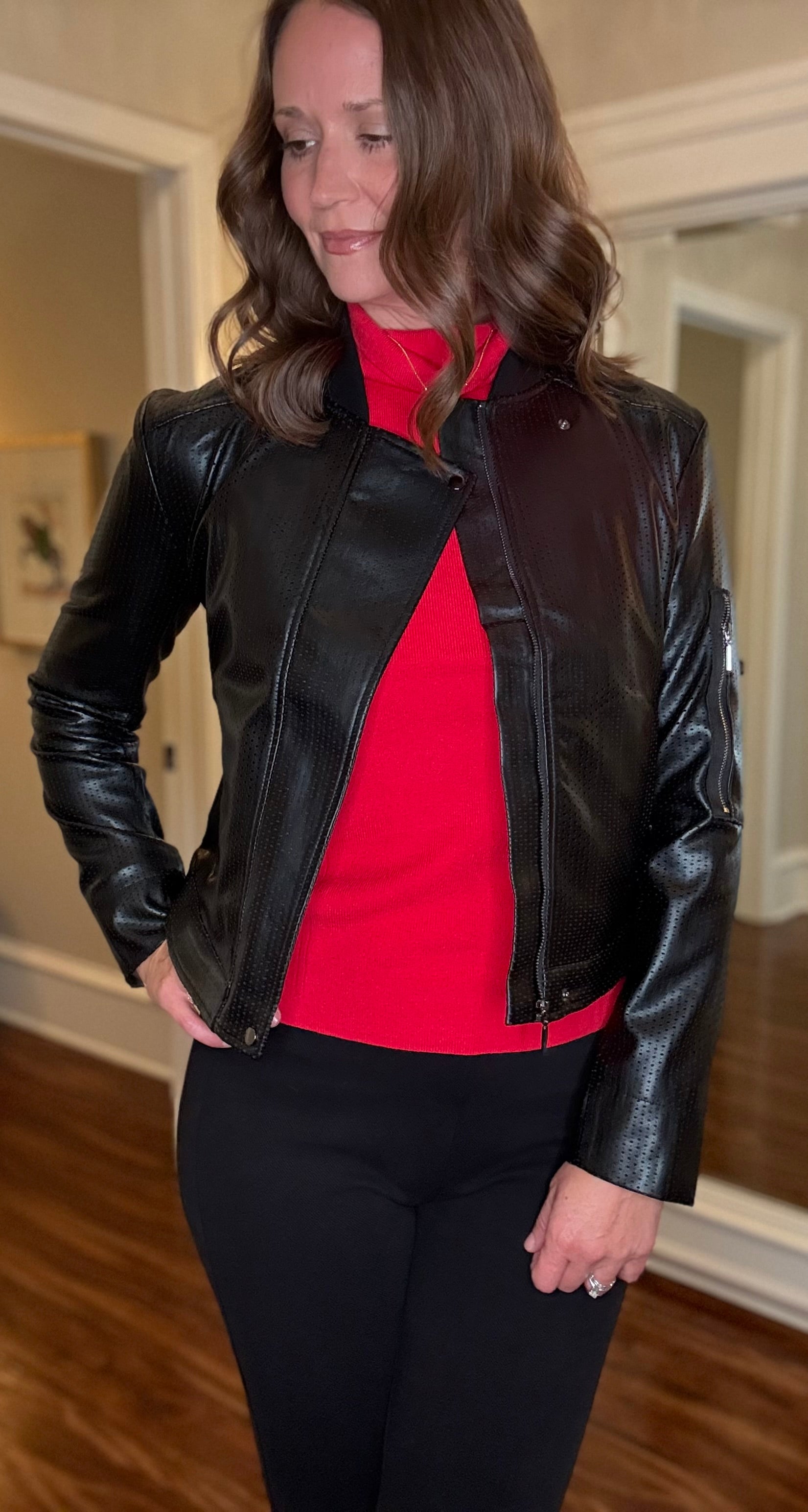 LYSSE MILLICENT PERFERATED VEGAN LEATHER JACKET 9.3