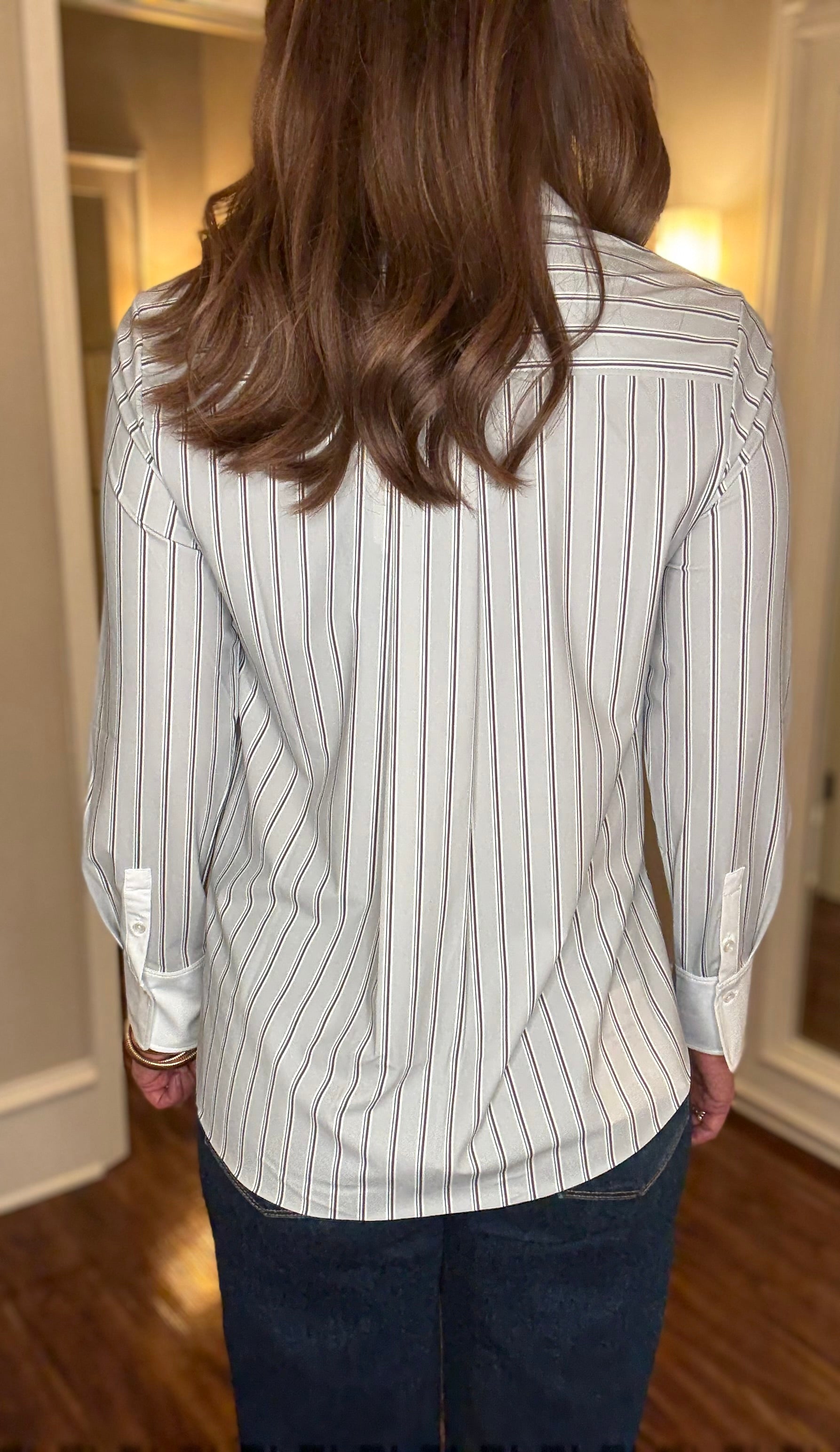 LYSSE EXECUTIVE STRIPE CROP BUTTON DOWN TOP 7.24