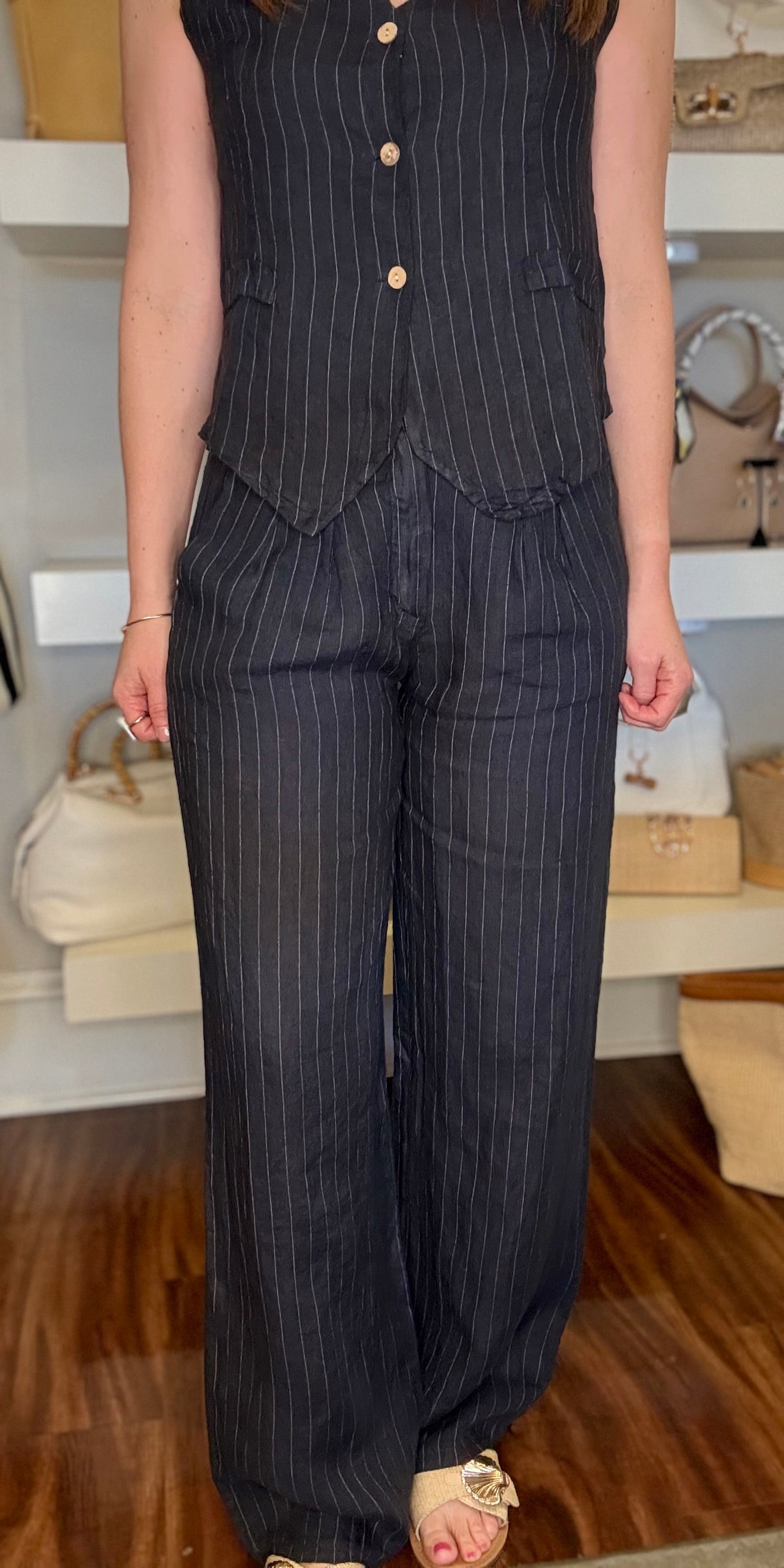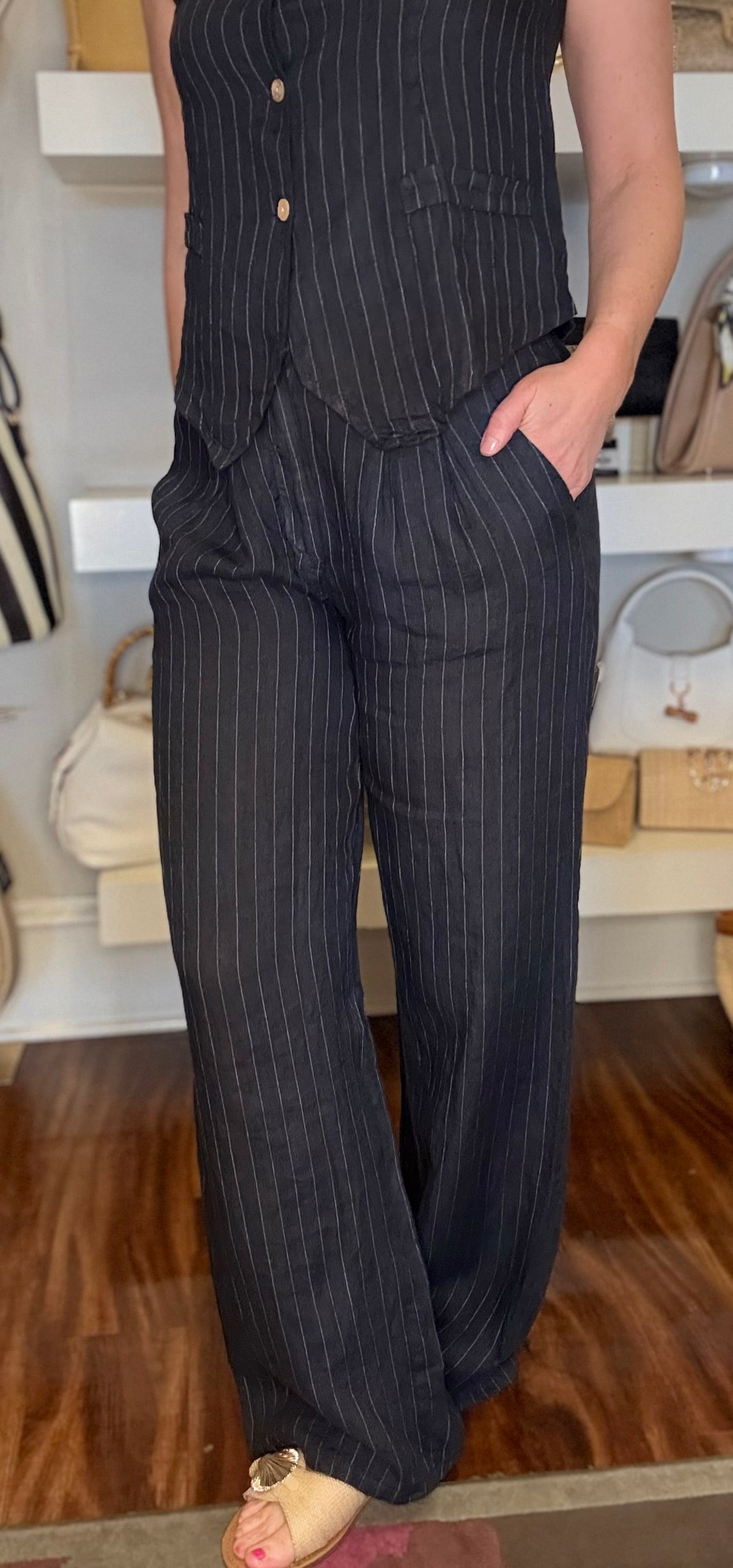 MILIO MILANO PINSTRIPED WIDELEG LINEN PANT 2.23