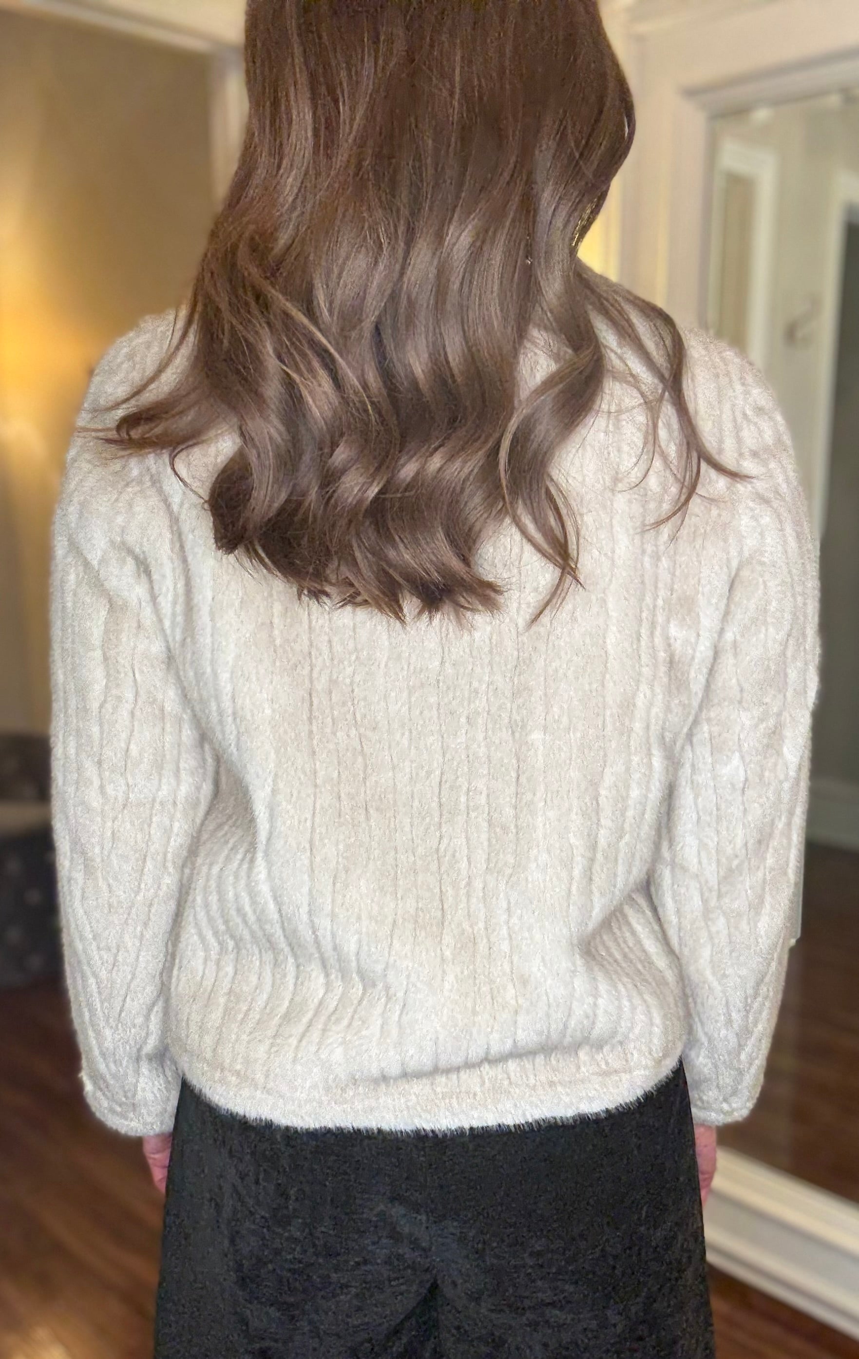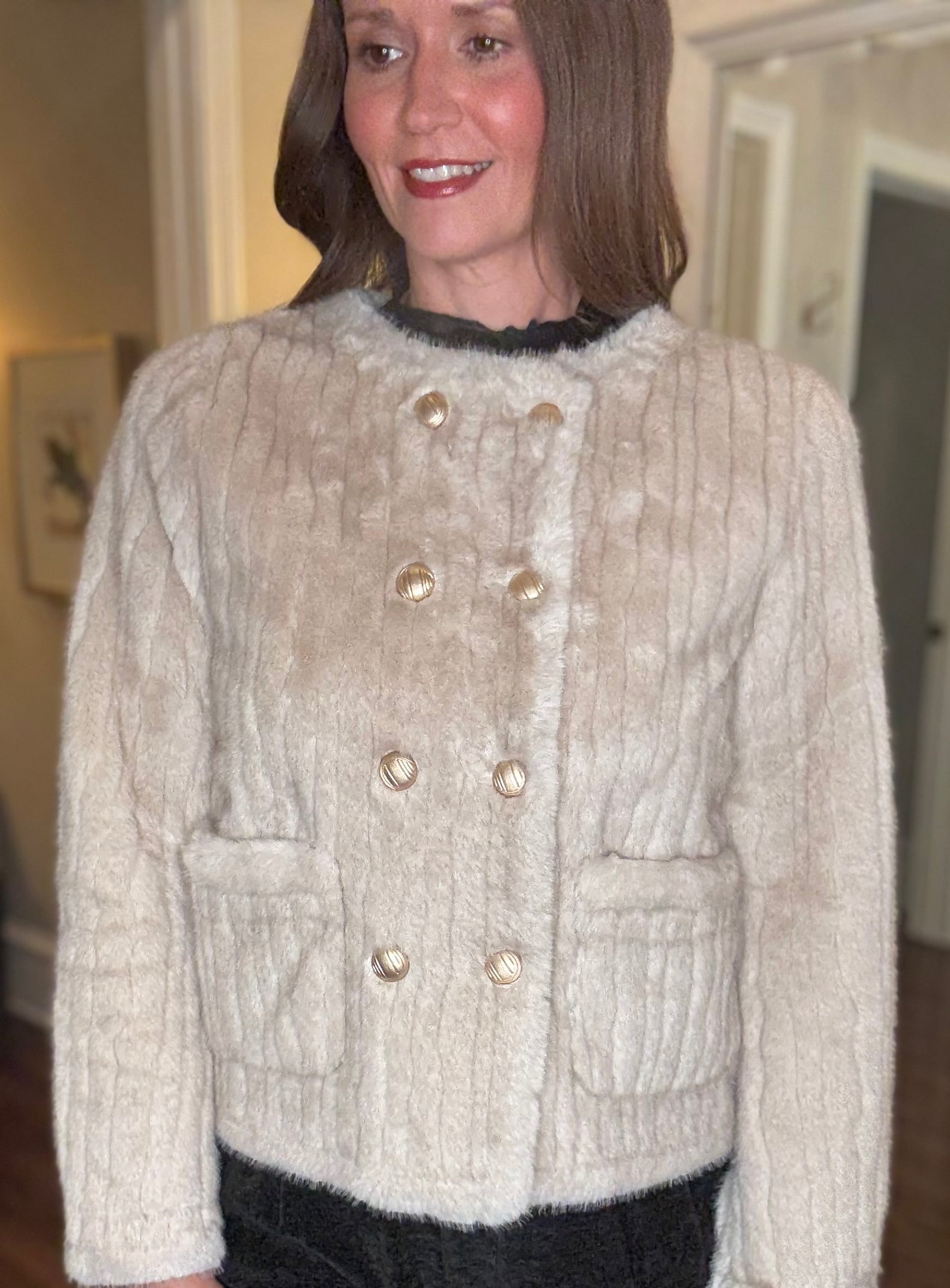 MOLLY BRACKEN BEIGE FAUX FUR JACKET WITH GOLD BUTTONS 8.15