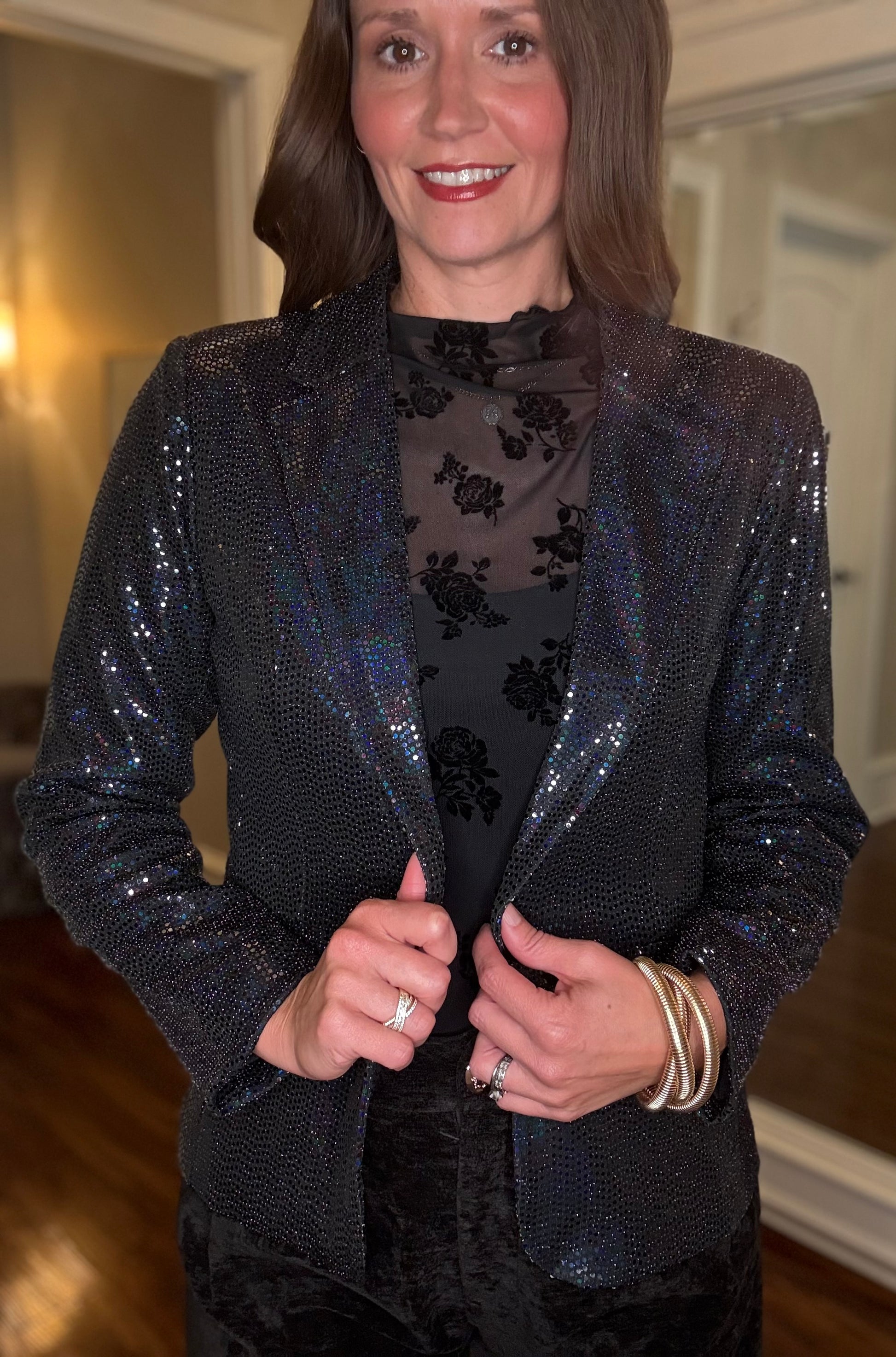 MOLLY BRACKEN BLACK SEQUIN BLAZER 8.15
