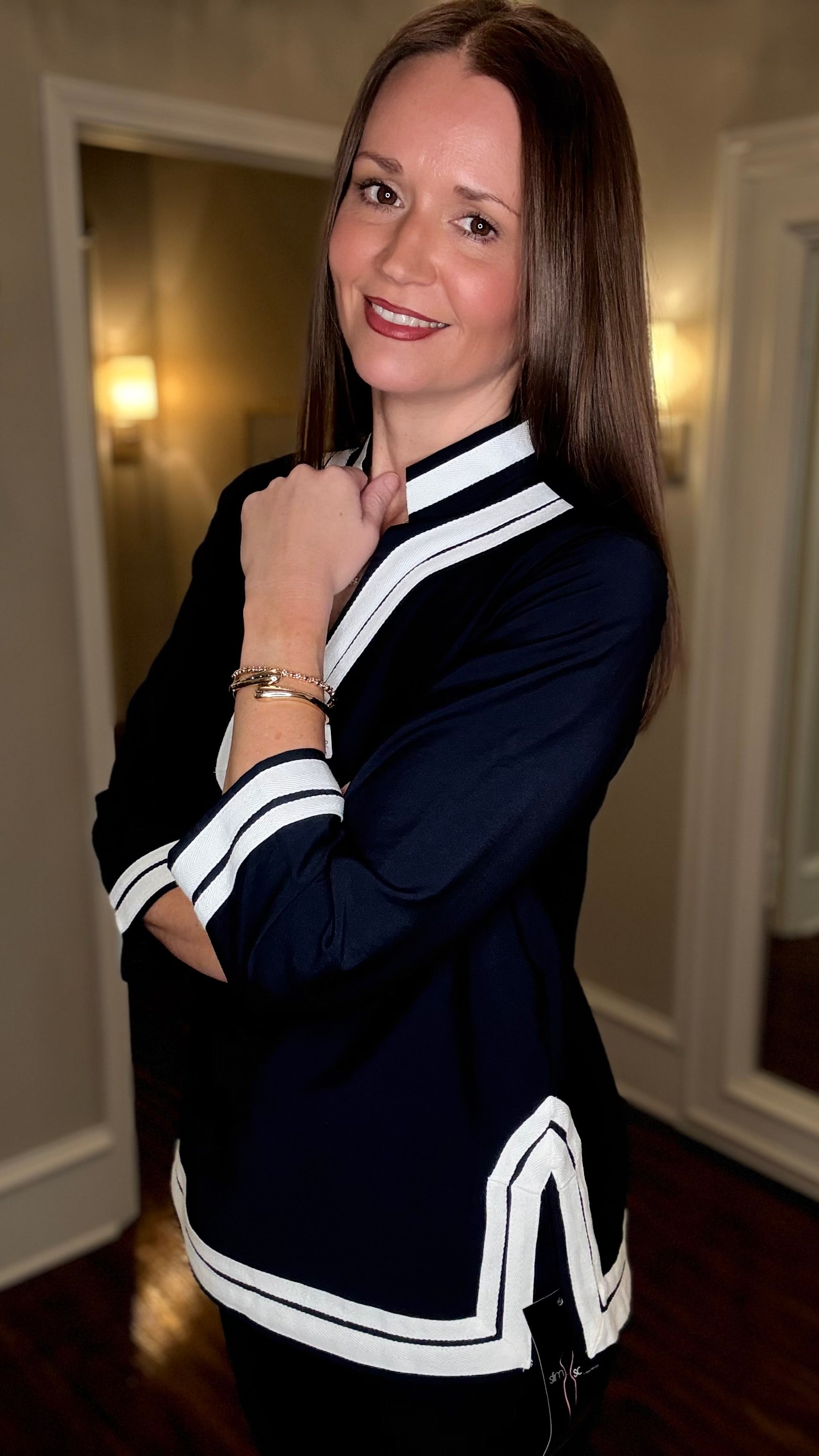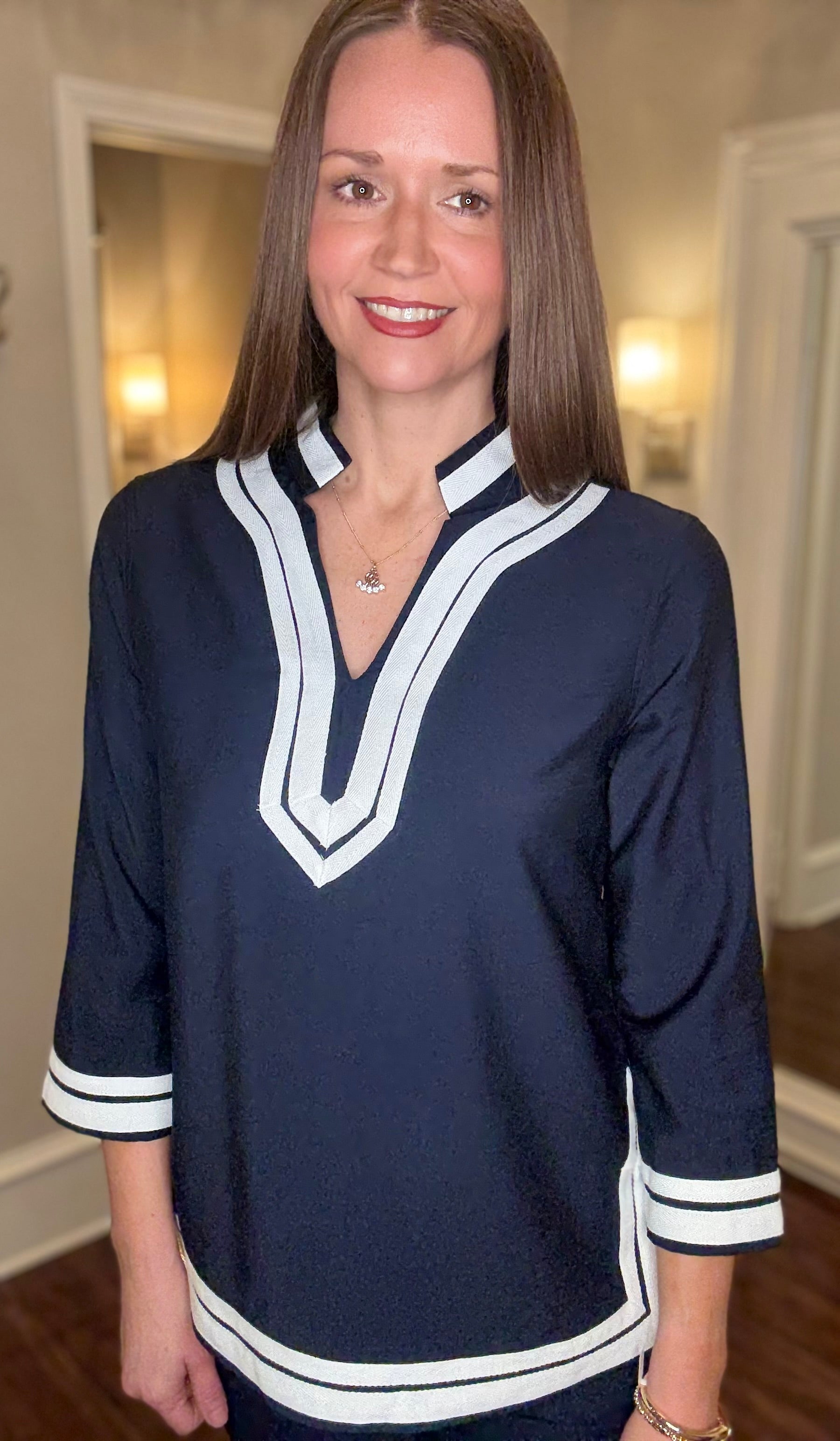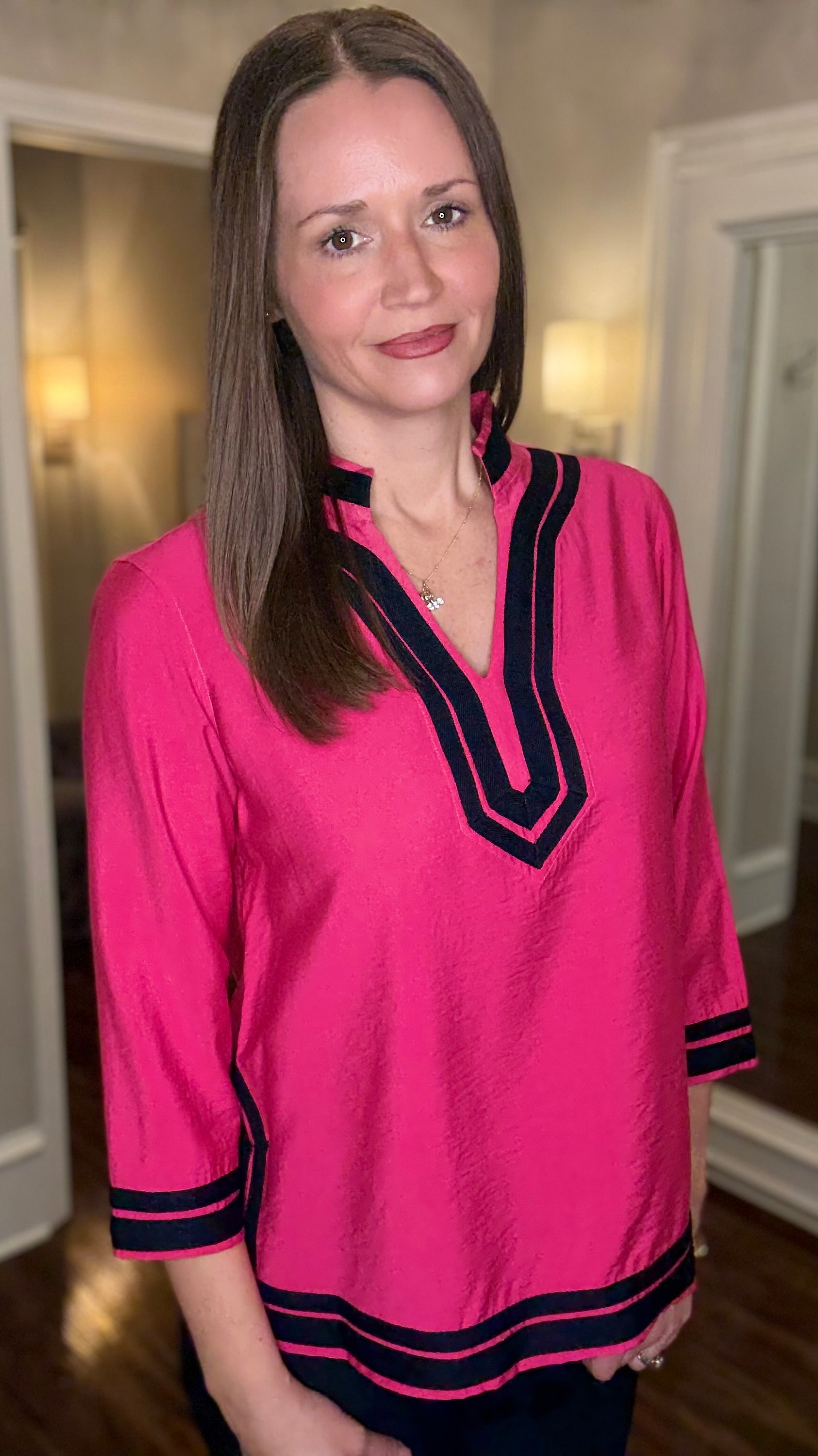 MULTIPLES 3/4 SLV NOTCH COLOR W/TRIM TOP (multiple colors) 1.15