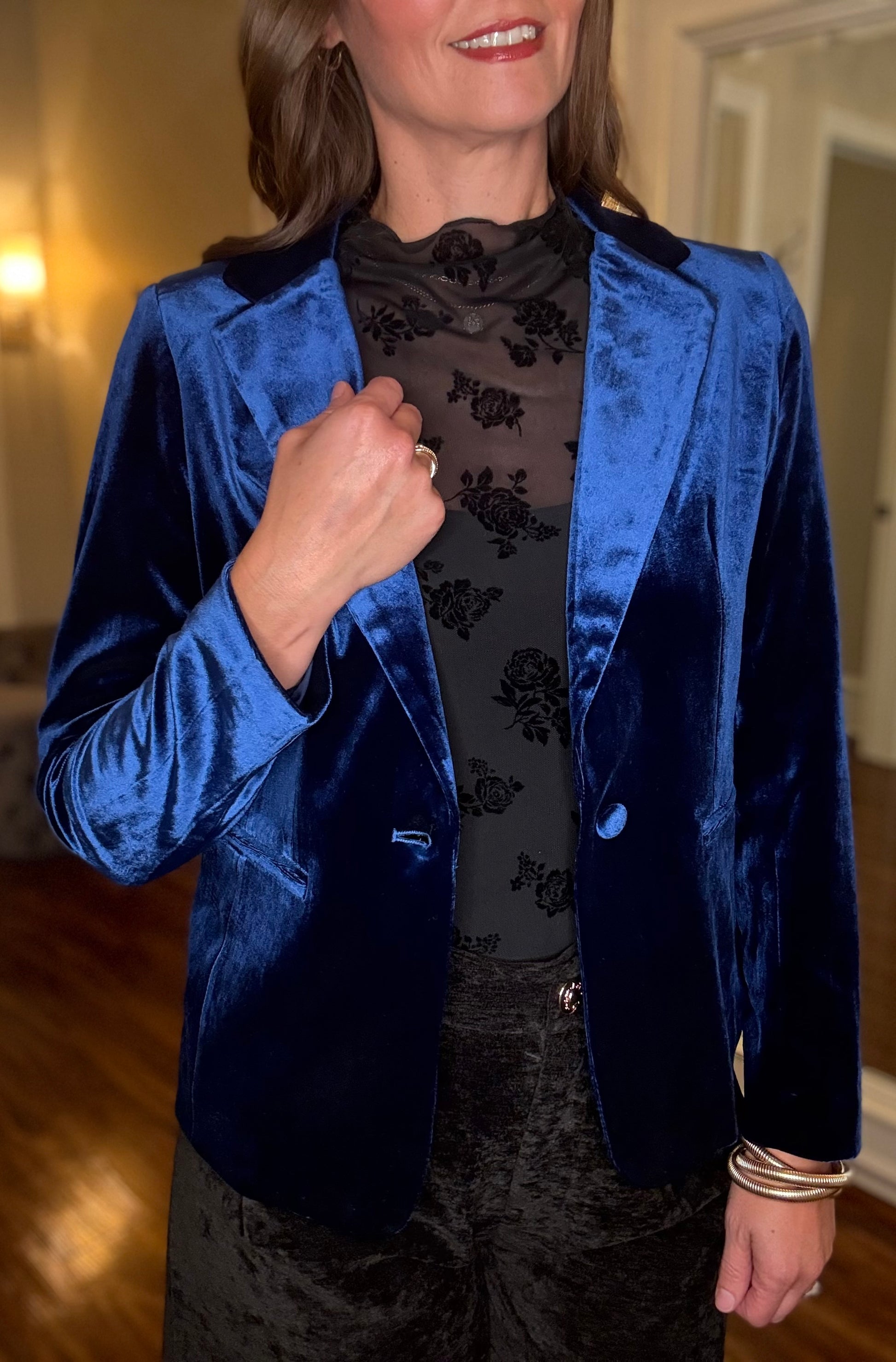 MOLLY BRACKEN BLUE VELVET BLAZER 8.15