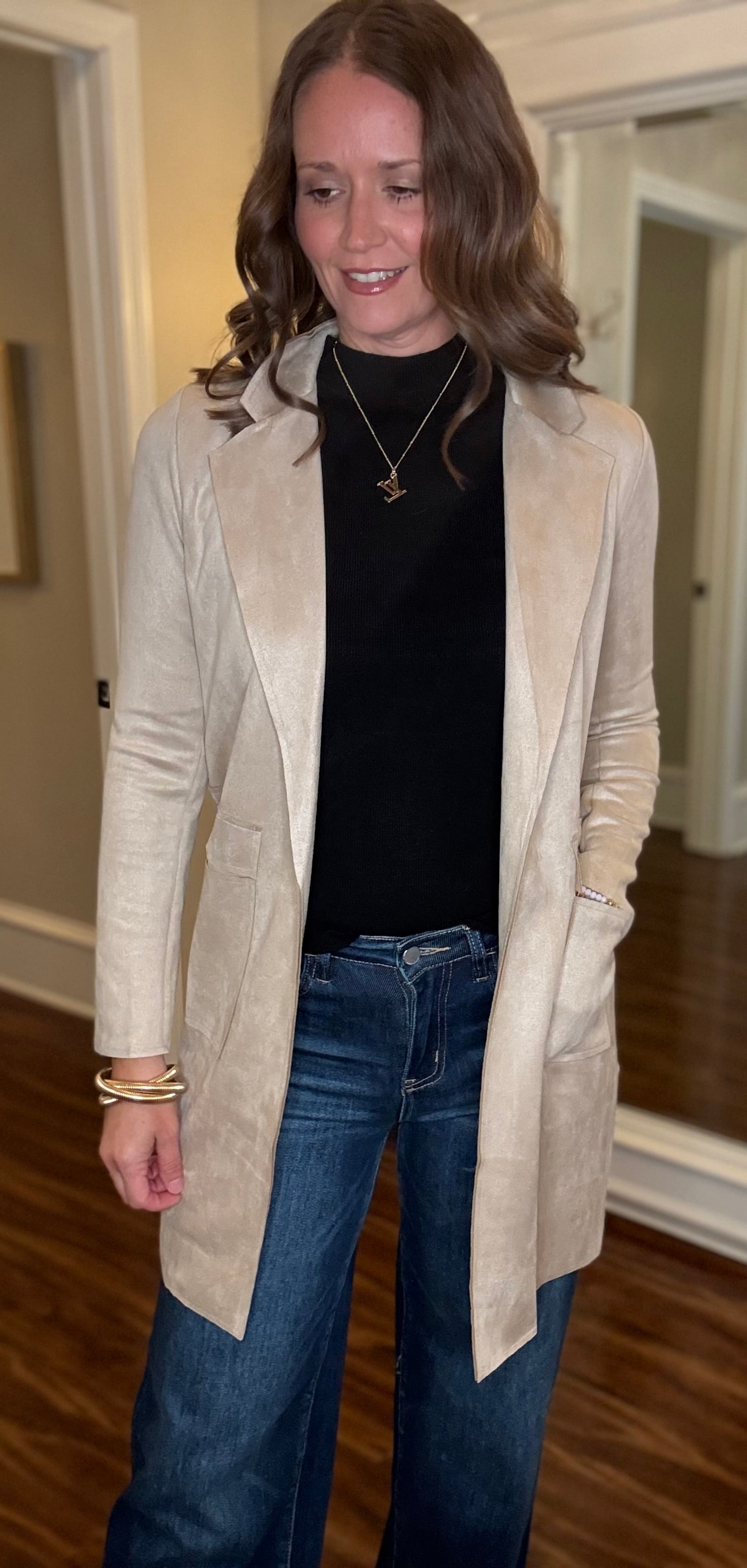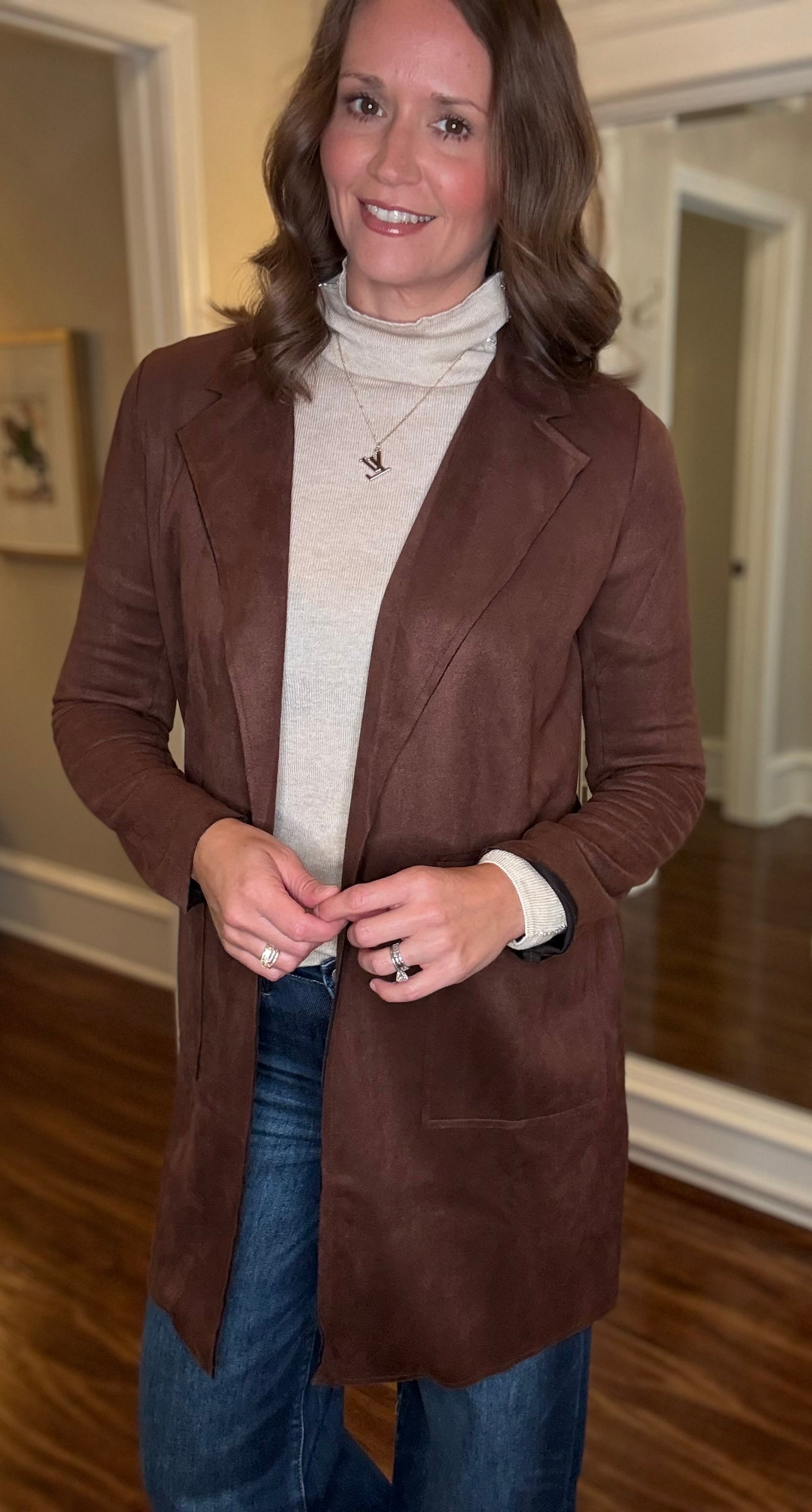 OPEN FRONT FAUX SUEDE JACKET (multiple colors) 8.14